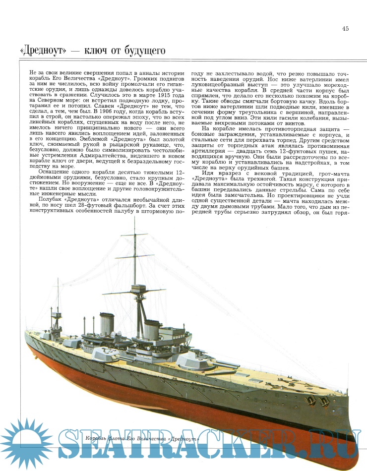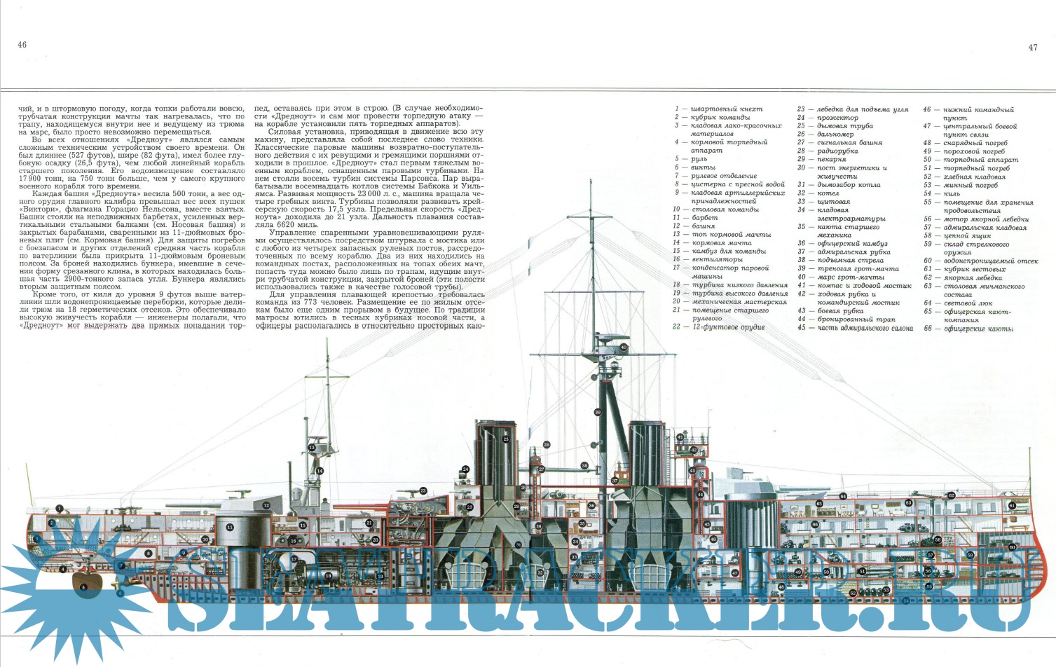 Описание: Книга, открывающая новую серию «Энциклопедия 'Великий час океанов», рассказывает об эволюции мощных военных кораблей-дредноутов, получивших название от первого английского корабля такого класса - «Дредноут», спущенного на воду в 1906 г.