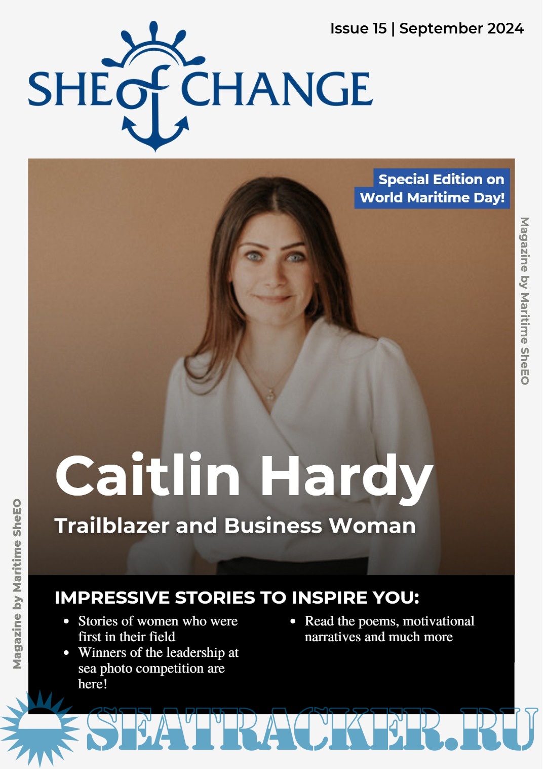The cover page portrays Caitlin Hardy, the MD and founder of Ness Sea, a consulting business that connects the technology and maritime industries. In the interview with Caitlin she talks about her incredible growth and journey within the maritime industry.