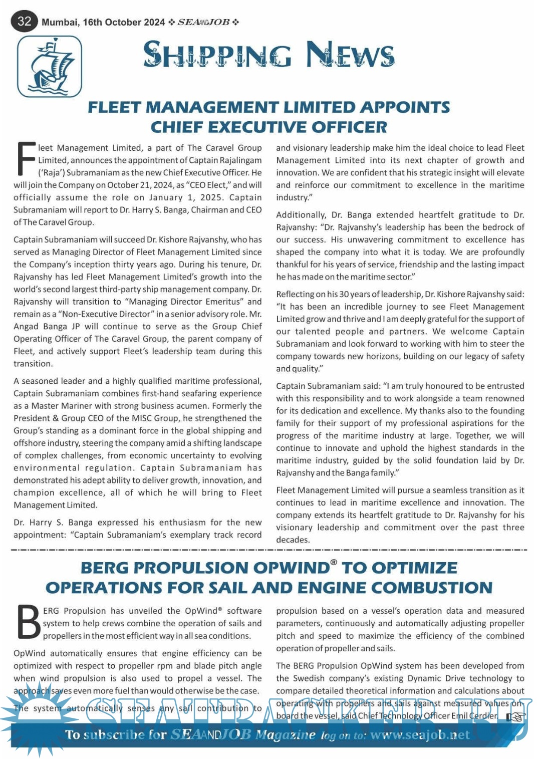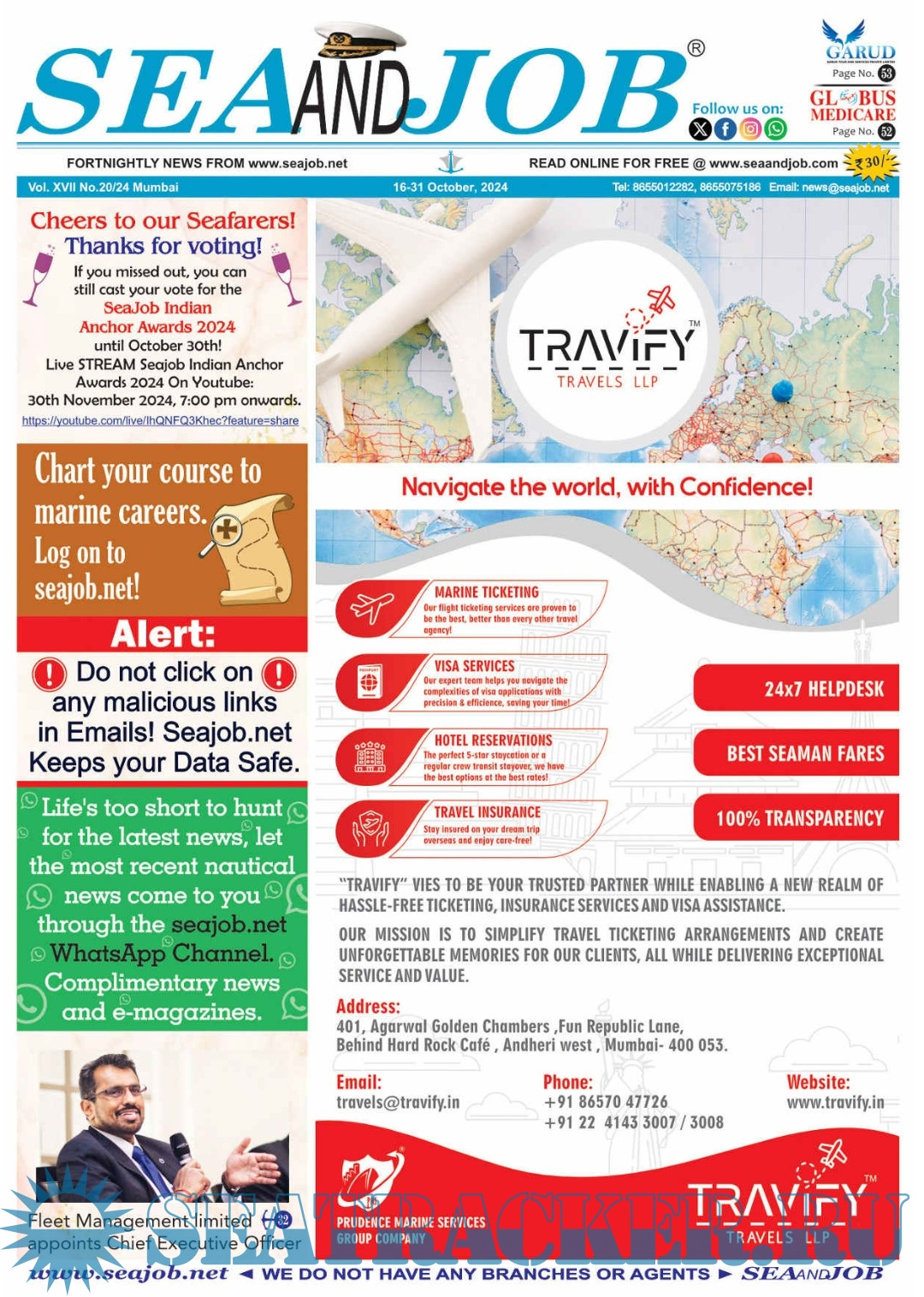 Year: 2024 Language: English Author: Sea Line Group Genre: Periodical (Magazine) Edition: Vol. XVII, No. 20/24 Format: PDF Quality: eBook Pages count: 72 Description: The Sea and Job magazine launched in May 2007, was the second venture of Sea Line Group succeeding 'seajob.net' bringing the much renowned essence to the Group, the Sea and Job Magazine quickly gained popularity, becoming the No. 1 Shipping Magazine that came to be widely circulated all over India.Sea and Job over the years has evolved as the most trusted, ethical, objective and read maritime publication that possesses a large database of subscribers from various verticals in the industry.The magazine provides informative and interesting articles covering not just the shipping world but also the world outside it. Sea and Job is also a medium for the shipping/ manning companies to advertise marine jobs and also to promote their organization by publicizing internal activities like seminars, sports events and parties.Some notable endeavors of the magazine include the Know Your Recruiter Column, the Sailing Episodes Column and the Marine Insights section. The consistent efforts and the dedication to provide extraordinary services to the industry has resulted in the magnifying popularity and patronage of Sea and Job. Additional info: 16-31 October 2024.