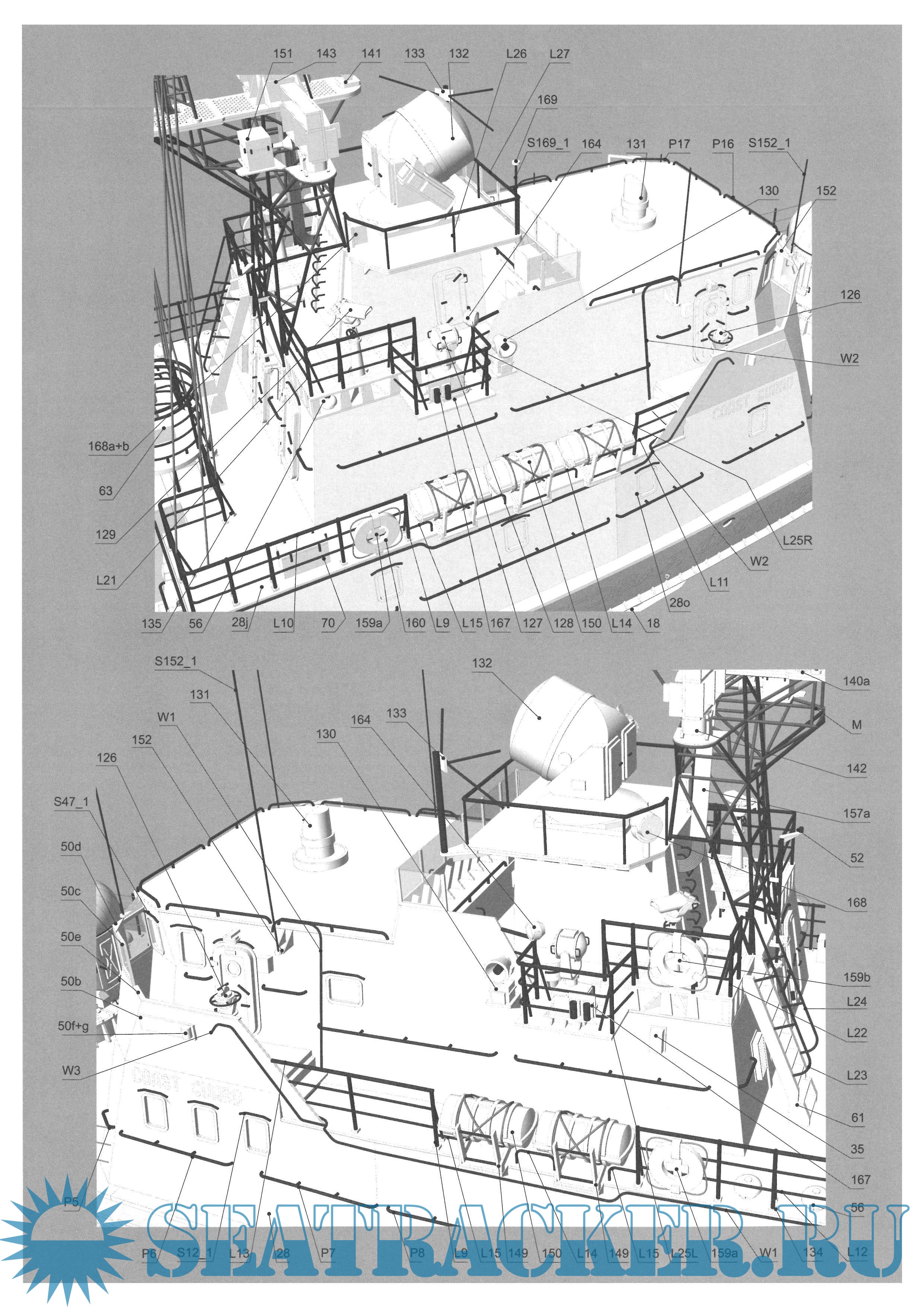 28 листов цветных выкроек и инструкций для изготовления бумажной модели сторожевого корабля "АЛМАЗ" проекта 10410 в масштабе 1:200
