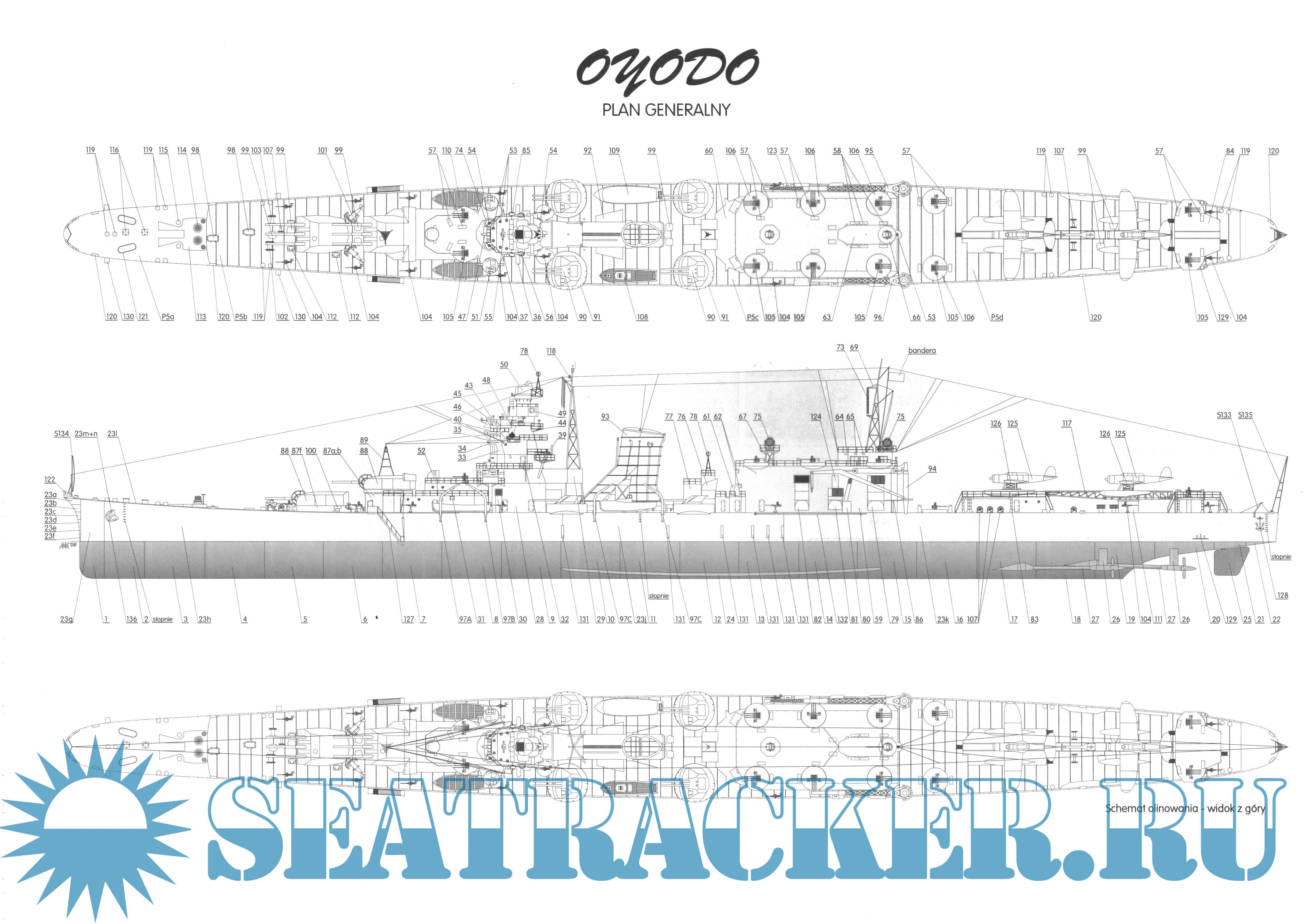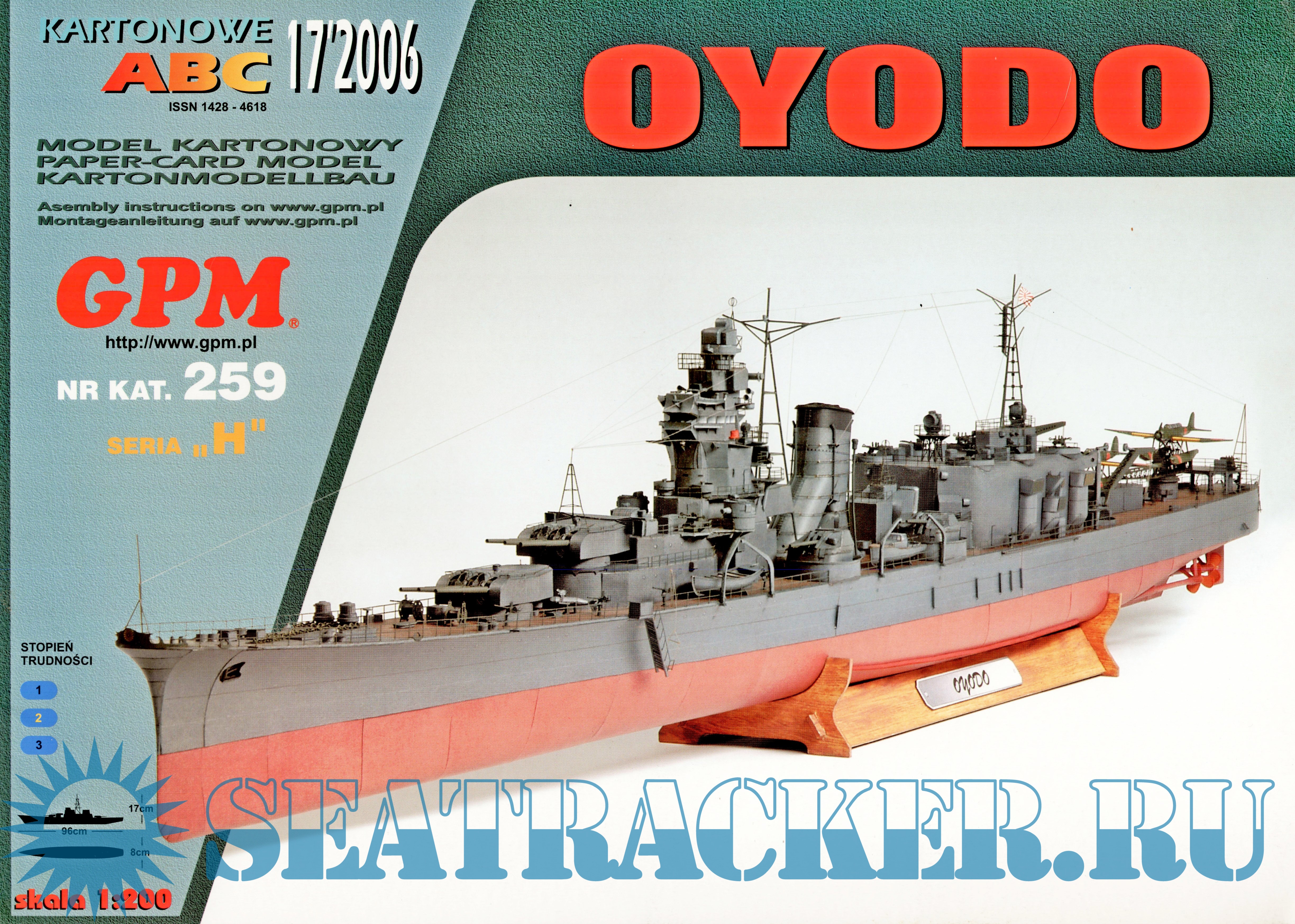 24 листа цветных выкроек и инструкций для изготовления бумажной модели японского крейсера "Oyodo" в масштабе 1:200