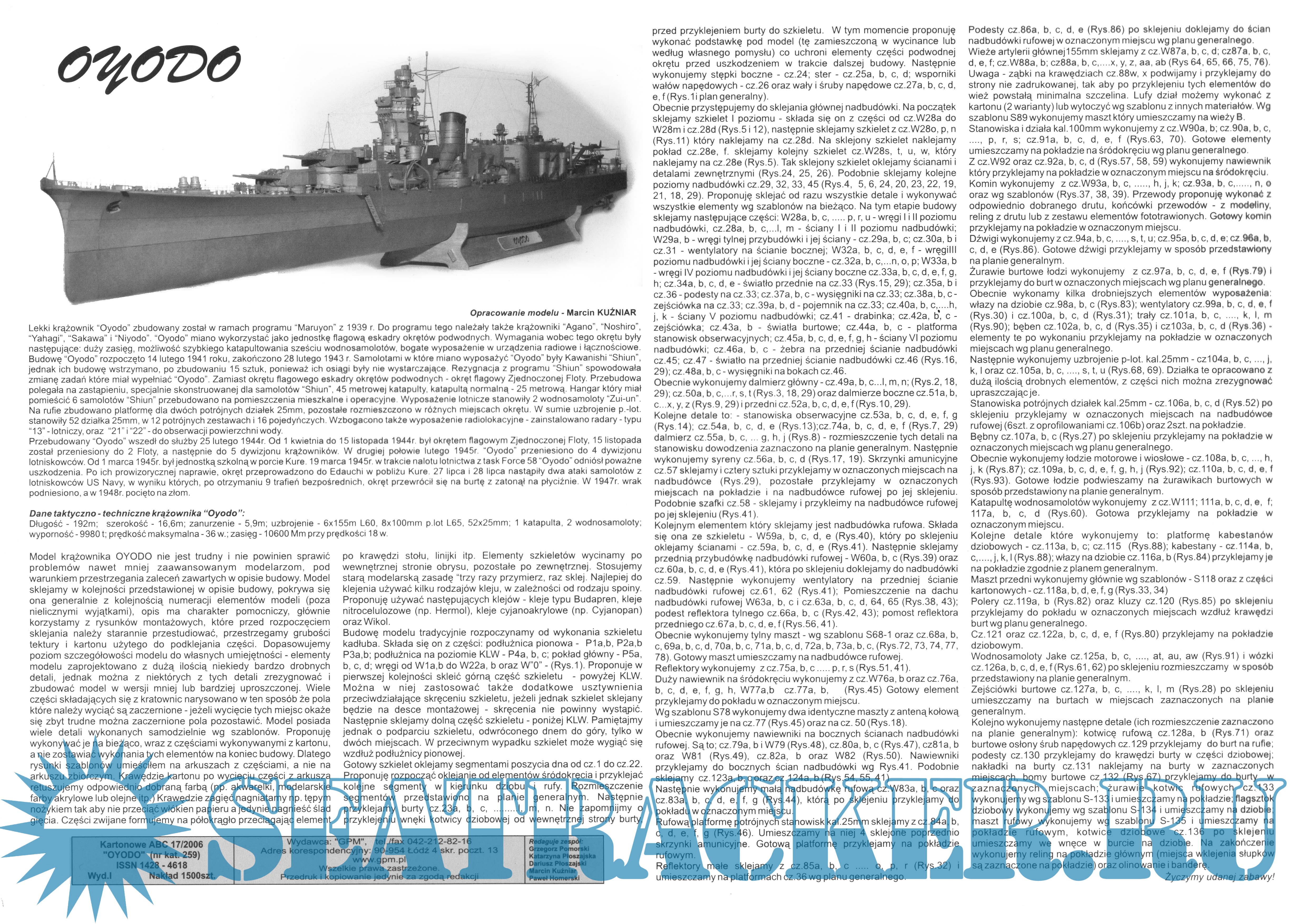 Описание: 24 листа цветных выкроек и инструкций для изготовления бумажной модели японского крейсера "Oyodo" в масштабе 1:200