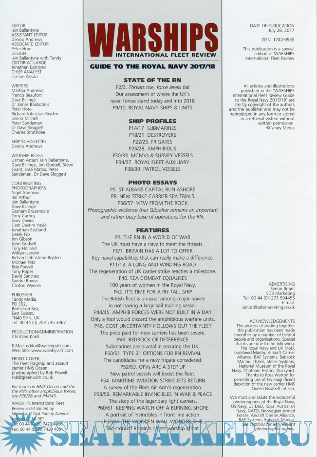Description: Warships IFR puts the spotlight on the latest developments in the world’s navies. It covers current defence issues and has comments by leading analysts. The magazine regularly includes features on the Royal Navy and the US Navy in addition to incorporating news and features on all other navies across the globe. Warships IFR frequently carries in-depth articles on naval heritage.WARSHIPS International Fleet Review is published 12 times a year by Tandy Media Ltd who also publish Shipping Today & Yesterday (which provides news and features from the world of merchant shipping).
