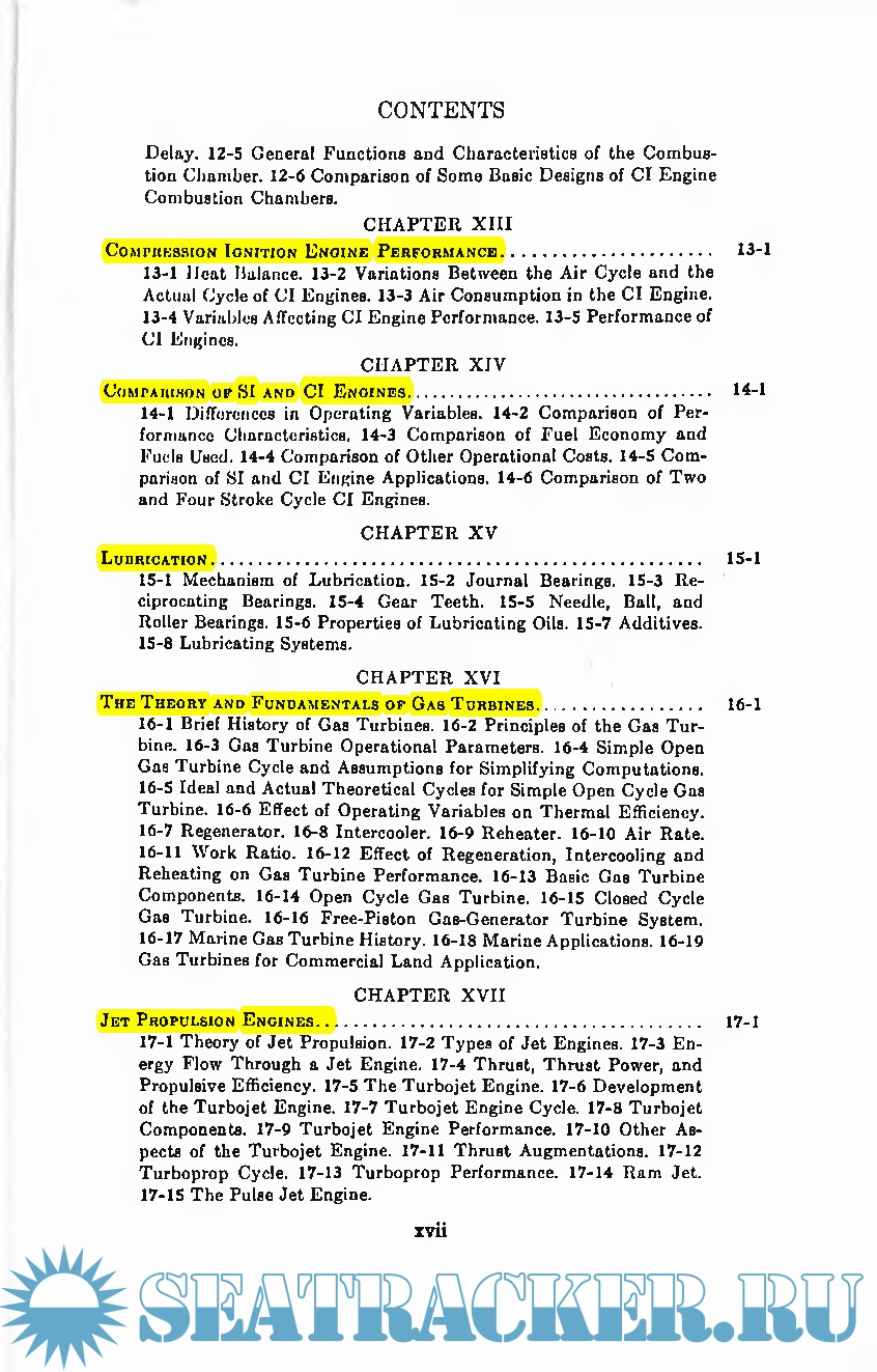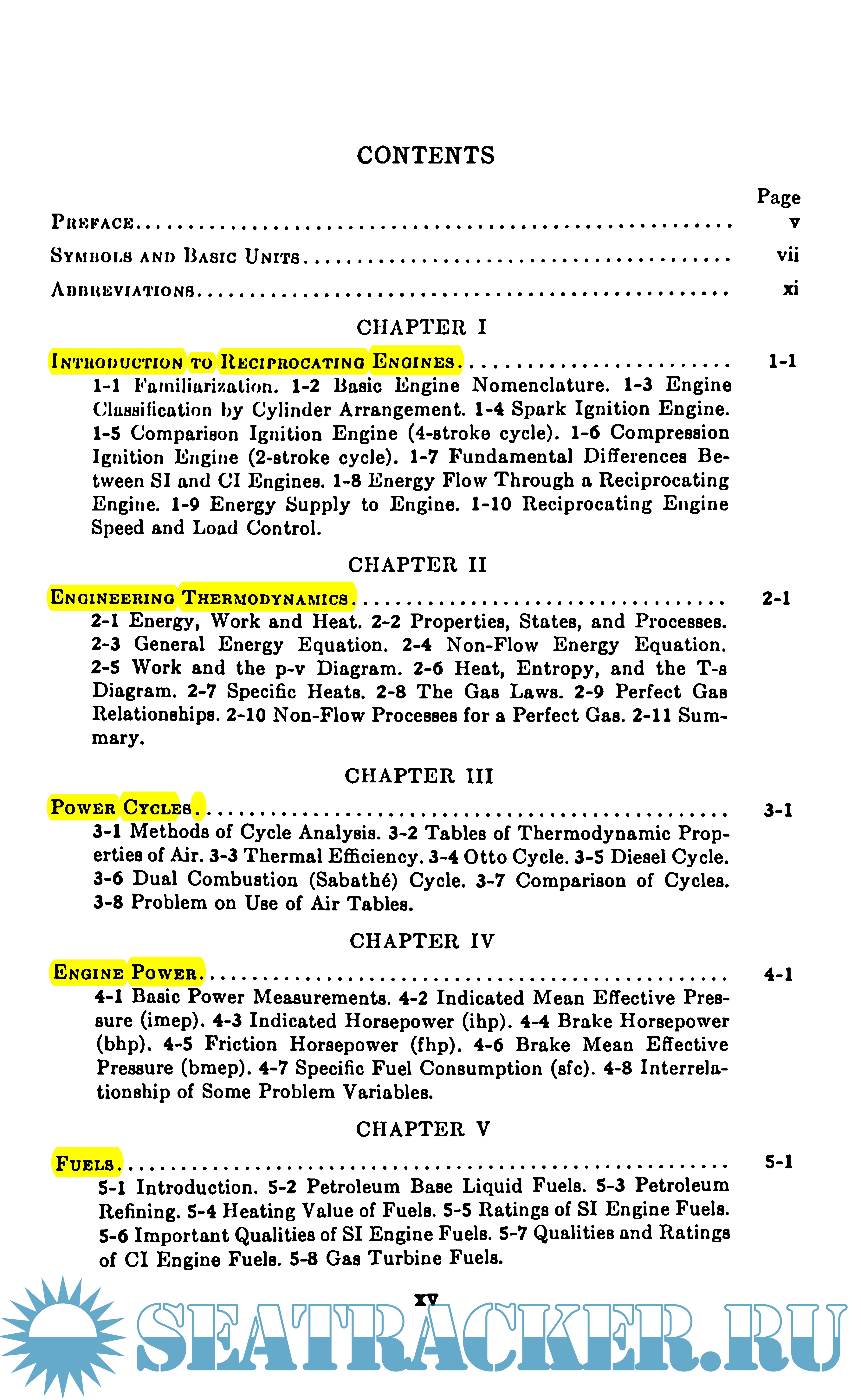 The text is arranged in two distinct parts. Part I covers the reciprocating types of internal combustion engines, i.e., the compression ignition and spark ignition power plants. The second part of the text is devoted to the gas turbine, particularly as applied to shipboard installations and the jet propulsion field. The latest types of propulsion plants, namely, hydrogen peroxide and nuclear power, are covered briefly.