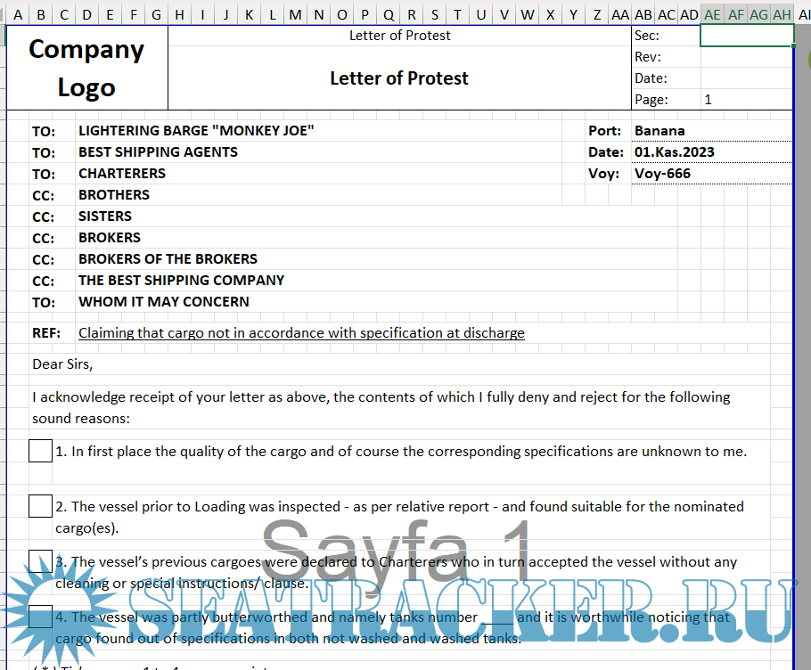 LETTER OF PROTEST EXAMPLES (EXCELL FORMAT)