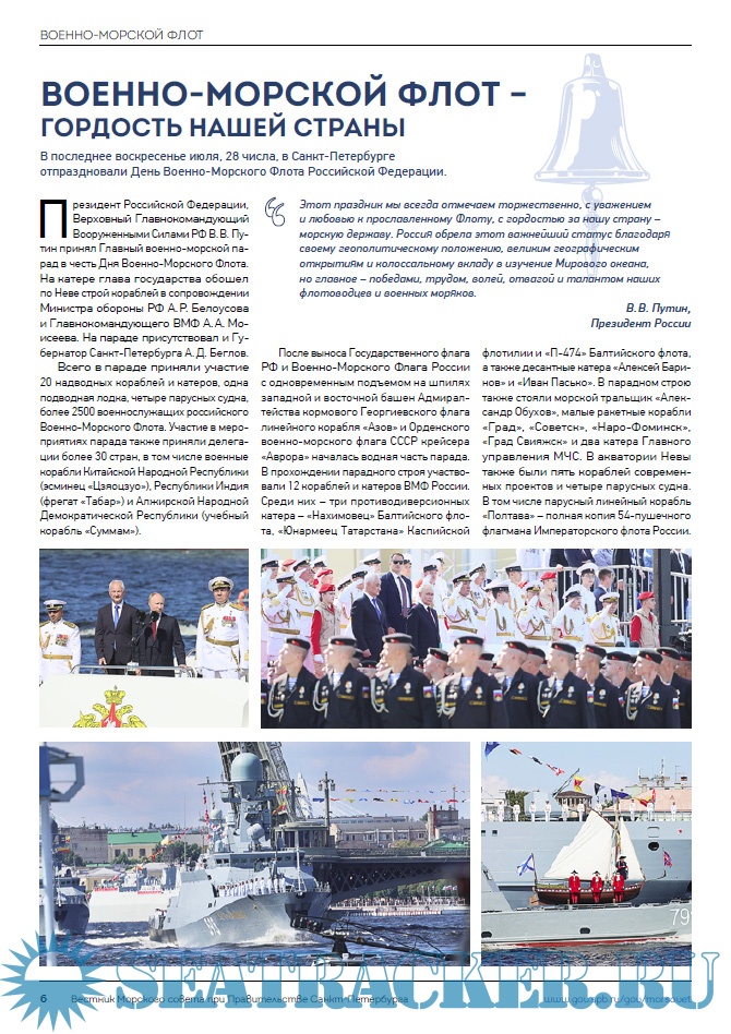 Описание: Целью информационного печатного издания является информационное освещение всех направлений морской деятельности Санкт-Петербурга: морской и речной транспортной деятельности, военно-морской деятельности, деятельности по эксплуатации портовой инфраструктуры, судостроения, деятельности по обеспечению экологической безопасности морского и речного судоходства, морского образования и науки, морского и речного туризма, парусного спорта и маломерного флота, деятельности по изучению, освоению и использованию Мирового океана и многое другое.