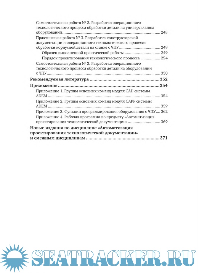 Описание: Пособие предназначено для теоретической подготовки и практического освоения приемов автоматизированной проектной деятельности по разработке технологической документации с помощью интегрированной компьютерной системы отечественной разработки ADEM CAD/CAMM/CAPP. Приведены сведения о видах технологической документации и способах автоматизированного проектирования. Разобраны примеры выполнения различных типовых действий при сквозном автоматизированном проектировании в цифровом режиме. Использован способ «компьютерного инжиниринга» при разработке конструкторской документации. Отражена последовательность действий при разработке технологической документации. Подробно рассмотрены примеры проектирования конструкторской и технологической документации для механической обработки детали на универсальном оборудовании и станках с ЧПУ. Содержатся образцы выполненных работ и задания для самостоятельного проектирования, а также методические рекомендации по организации учебного процесса. В приложения включены справочные данные для пользователя компьютерной системы. Соответствует требованиям ГОСТ ЕСКД и ЕСТД.