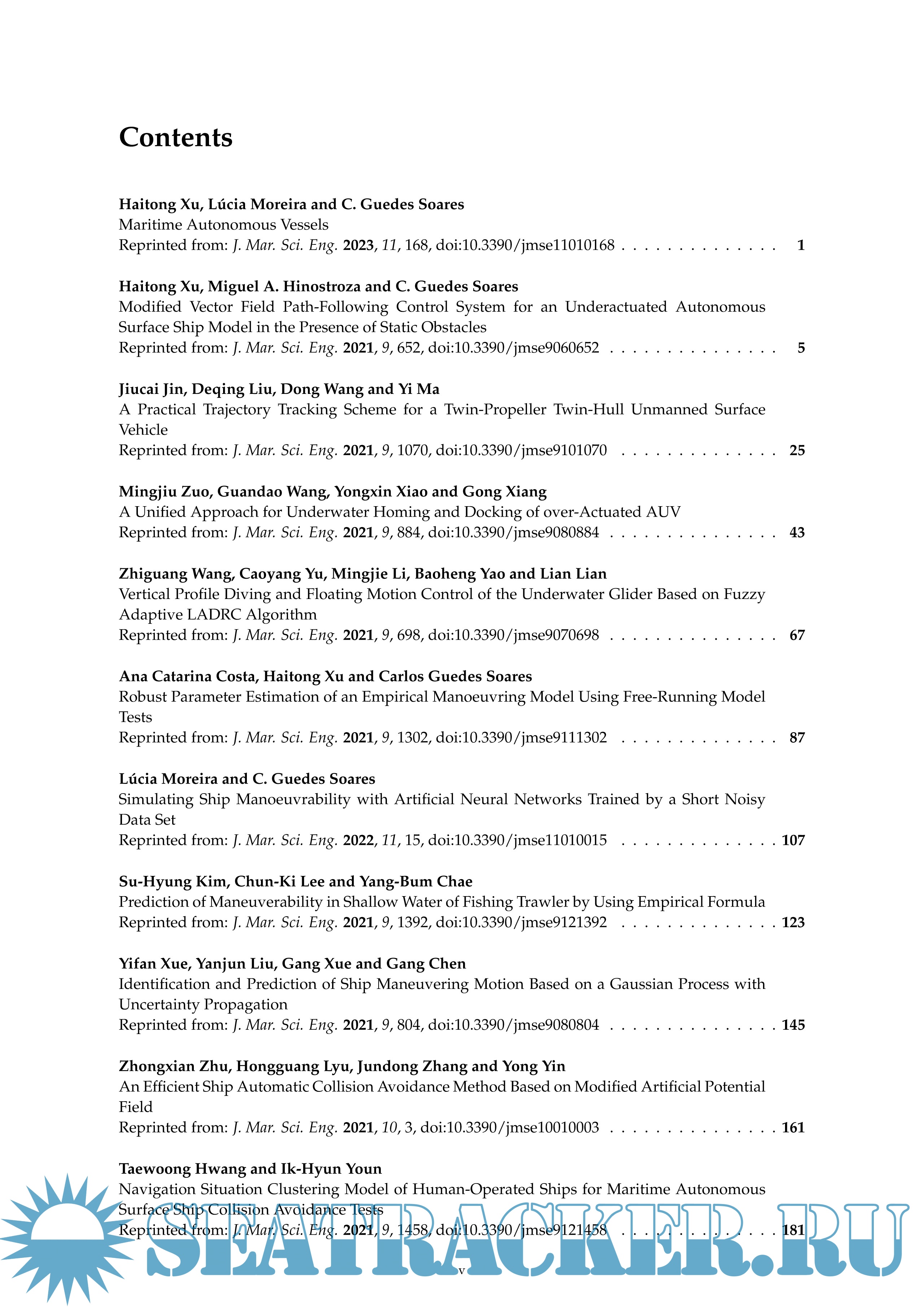 Year: 2022 Language: English Author: Haitong Xu, Lúcia Moreira, Carlos Guedes Soares Publisher: MDPI ISBN: 978-3-0365-6414-2 Format: PDF Quality: eBook Pages count: 334 Description: This reprint is a printed edition of the Special Issue on Maritime Autonomous Vessels that was published in the Journal of Marine Science and Engineering. It contains an editorial and 17 peer-reviewed research studies in the field of Maritime Autonomous Surface Ships (MASS), Unmanned Surface Vessels (USVs), Autonomous Underwater Vehicles (AUVs), and underwater gliders, to name a few. The main goal of this reprint is to address key challenges, thereby promoting research on marine autonomous ships. There are many topics on autonomous vessels involved in this reprint, for instance, automatic control, manoeuvrability, collision avoidance, ship target identification, motion planning, and buckling analysis.
