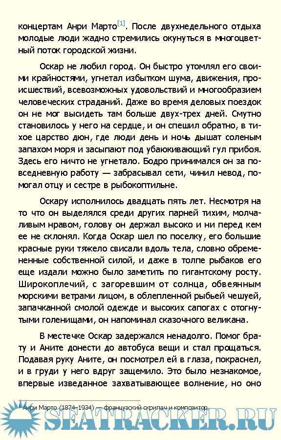 Год выпуска: 1979 Язык: Русский Автор: Лацис В. Жанр: Художественная литература Издательство: Маяк Издание: Морская библиотека Формат: FB2 Качество: Изначально компьютерное (eBook) Количество страниц: 676 Описание: Начиналось все почти как классическая сказка о Золушке, но в мужском варианте - брат обеспечивает нужды не только еще не старых родителей, но и сестру, которая уже не знает, какую еще обновку приобрести и брата, который учится в Риге, носит "городские" костюмы и конечно же на работу у него нет времени. Сам же главный герой, Оскар Клява, привык каждый день выходить в море, носить промасленную куртку и латать старые сапоги. Тяжелый, однообразный, а местами и вовсе трагический быт рыбачьей деревни, конечно, показан с почти этнографической достоверностью, включая пьянство, постоянные ссоры, вранье и нищету. На этом фоне Оскар выглядит как-то чересчур идеальным - почти не пьет, в конфликты до последнего не встревает, живет без долгов... Натурально, сказочный герой!