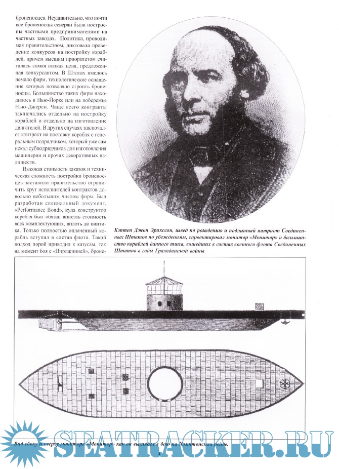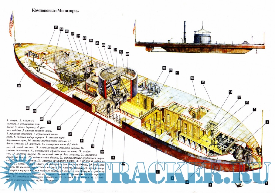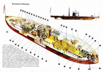 Описание: О том, что “Мерримак” (переименованный вообще-то в “Вирджинию”) и “Монитор” произвели революцию в военном деле знают даже в детских садиках. Все-таки напомним: полдела, что “Монитор” являлся бронированным кораблем, все дело в том, что на бронированный корабль установили впервые в истории башню с артиллерийскими орудиями, а башня могла вращаться в секторе 360 градусов. Первое сражение между броненосцами, известное как “битва при Хэмтон Роадз”, произошла 9 марта 1862 г. Итоги боя привели к повальному увлечению строительством мониторов. Президент США Абрахам Линкольн, будучи человеком неизмеримо от флота далеким, тем не менее заявил, что отныне победу в морской войне смогут принести только “мониторы”. Самый первый монитор под названием “Монитор” дал имя целому классу хорошо бронированных и отменно вооруженных кораблей.