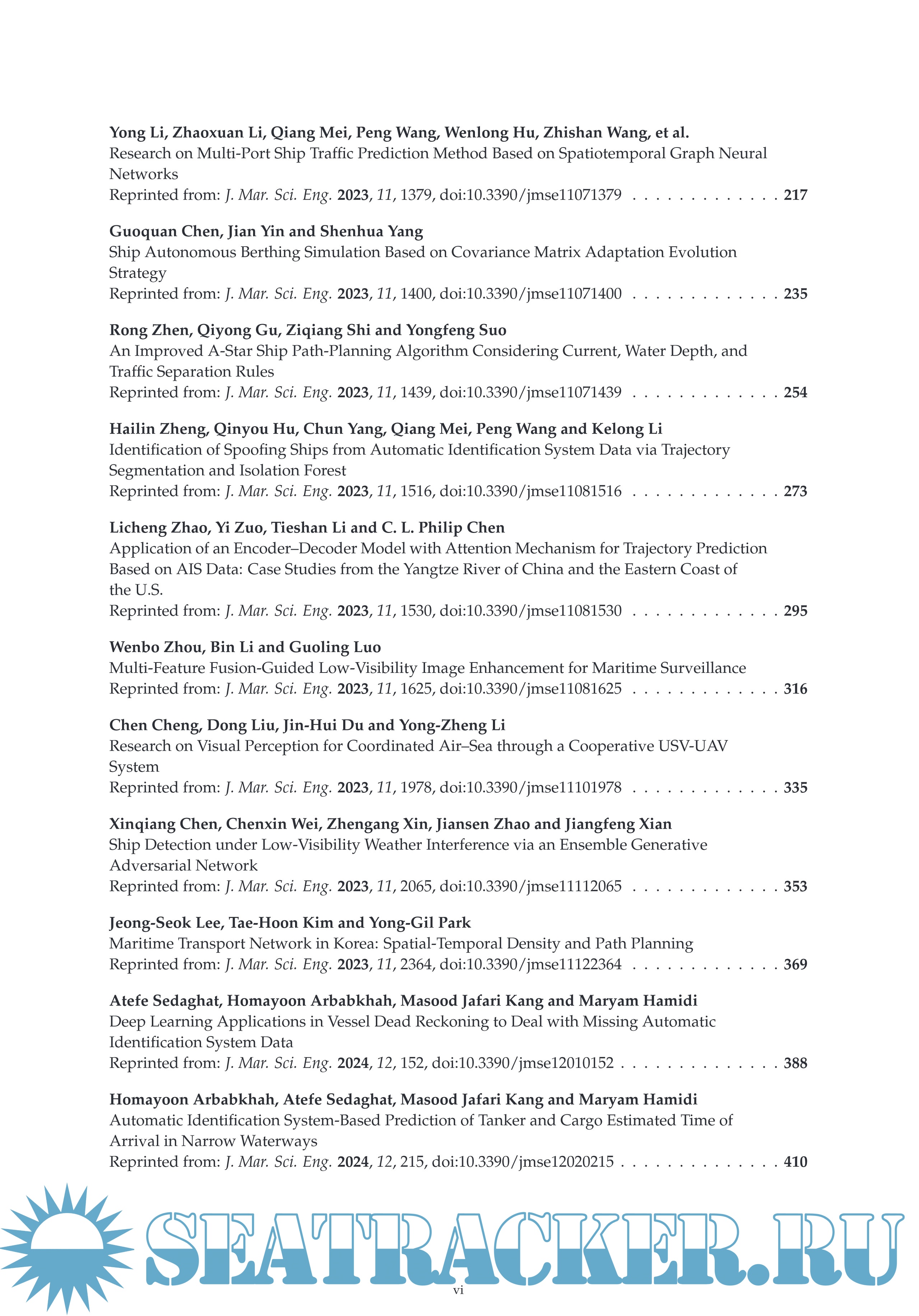 Description: Maritime transportation assumes a large number of cargo-delivering tasks in world trade. It is noted that maritime traffic safety and efficiency may be affected by varied factors such as weather, ship crew proficiency, etc. The topic Reprint focuses on the use of artificial intelligence techniques to enhance maritime transportation efficiency. More specifically, the Reprint unveils cutting-edge machine learning-supported studies, including autonomous guide vehicle path optimization, ship arrival and departure time estimation from insufficient/biased maritime data, anomaly ship kinematic data cleansing, ship collision avoidance, etc.
