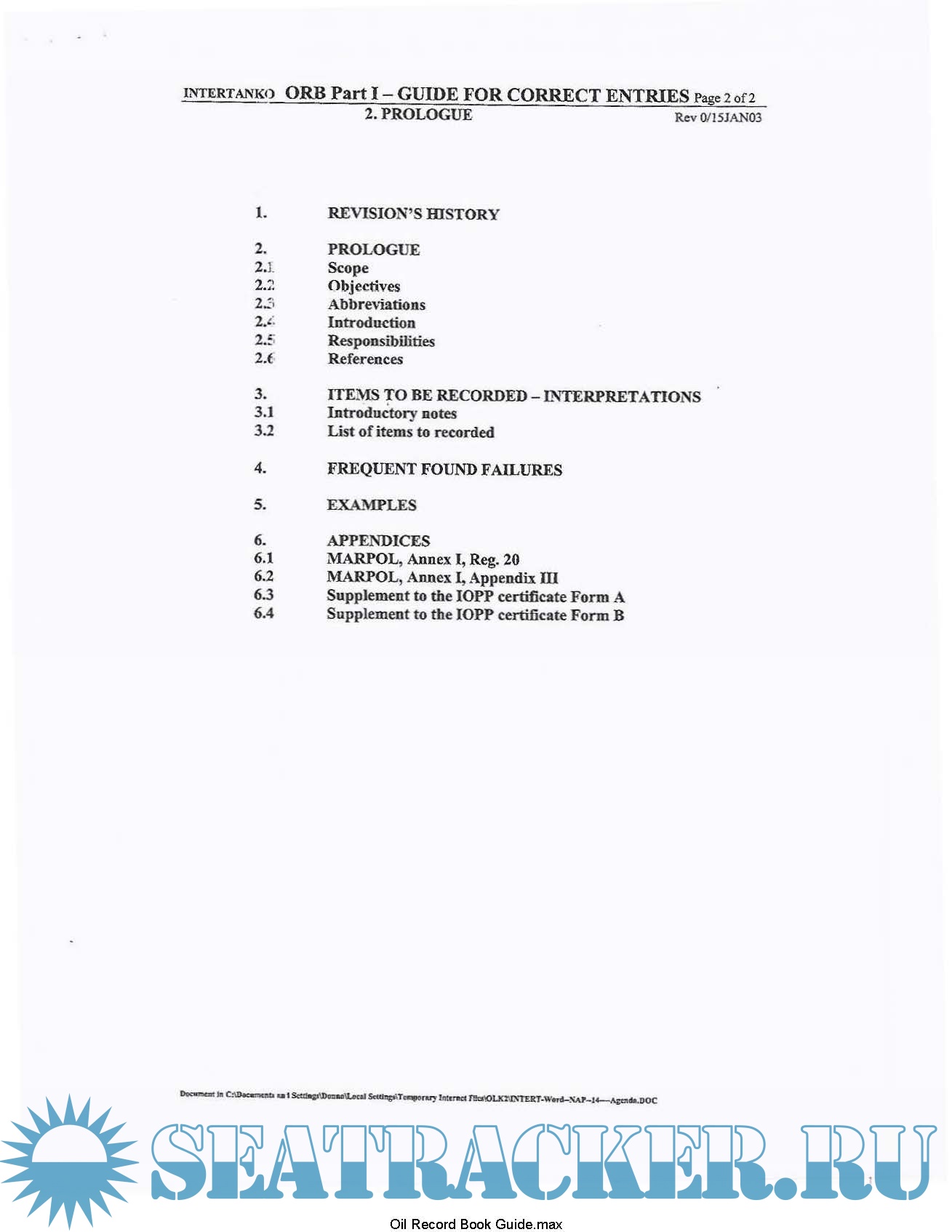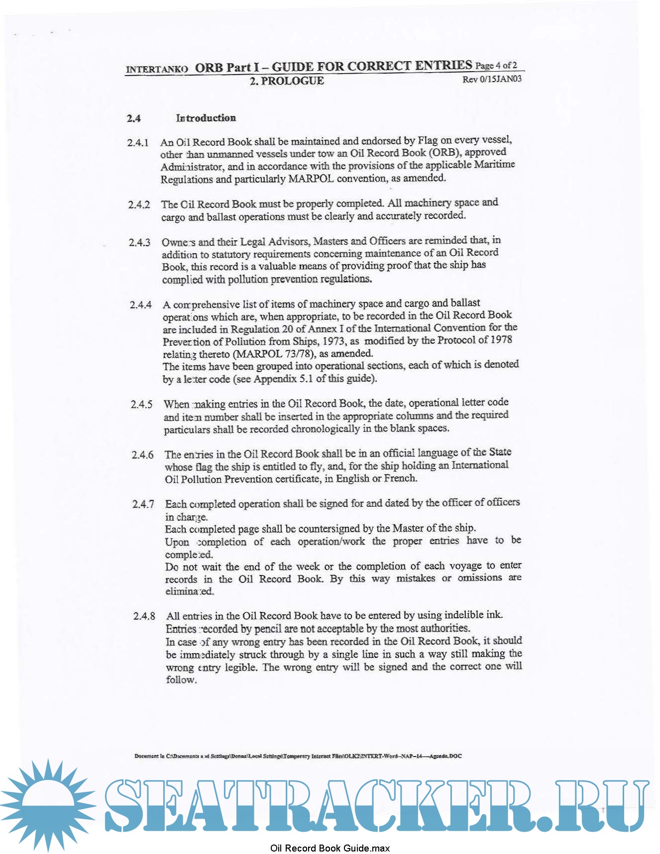 Description: Oil Record Book Part 1 Guide for correct entries Intertanko 2003