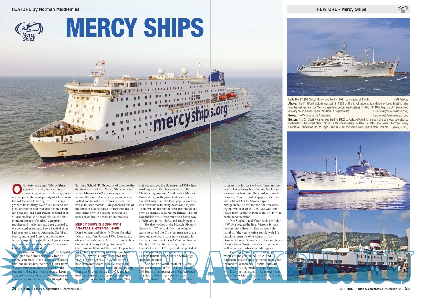 Description: Shipping T&Y is a monthly magazine for the shipping enthusiast offering up-to-date information, topical and in-depth historical articles alongside images, many of which are exclusive to the magazine.Shipping Today & Yesterday is a specialist magazine for the shipping enthusiast offering up-to-date information, topical and in-depth historical articles.Shipping Today & Yesterday was first produced in March 1990 by, the then Editor and Publisher, John Young. The first edition stated that it would, “offer a news service covering important developments in the Shipping industry Today and will look back at ships and events of Yesterday, with regular features on merchant ships