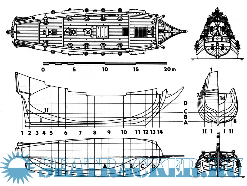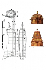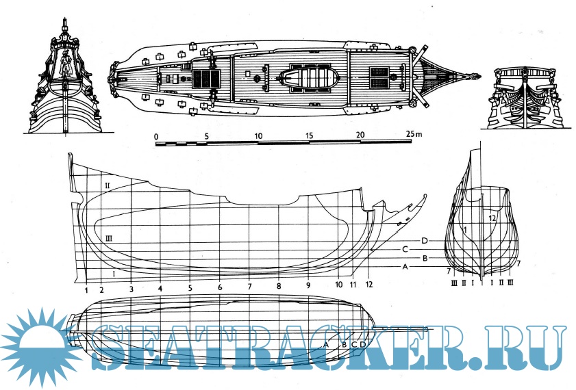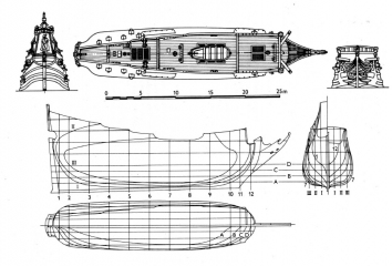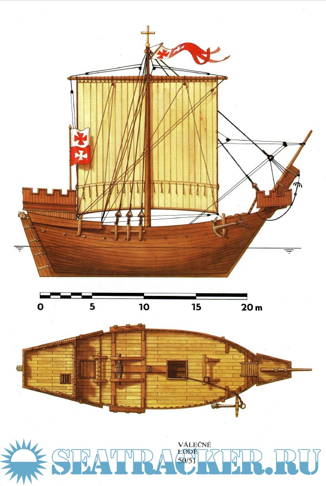Středověké lodě-lodě, coggy, caracchi a karavely. Plachetnice s plnou plachetnicí. Zobrazeny jsou návrhy různých lodí-asi 40 schémat celkového vzhledu, řezy, výzbroj, schéma rangoutu a takeláže plachetnice. mezi nejvýznamnější bitvy patří Salamin, Lepanto, Abukir, Trafalgar, Sinop. Kniha končí vznikem francouzské fregaty Gloir, na které byly použity dvě inovace, které znamenaly začátek nové éry - parní stroj a rezervace na palubě železnými pásy. začalo století páry a brnění.
