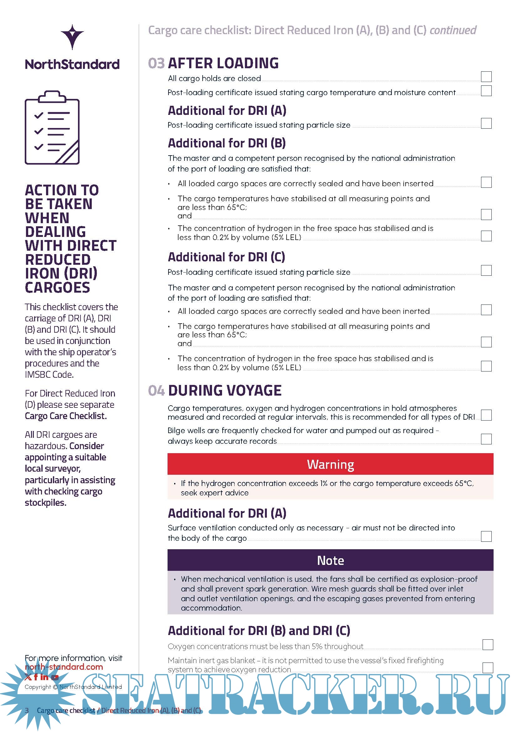 Cargo Care Checklist: Direct Reduced Iron (D) - NorthStandard [2024, PDF]