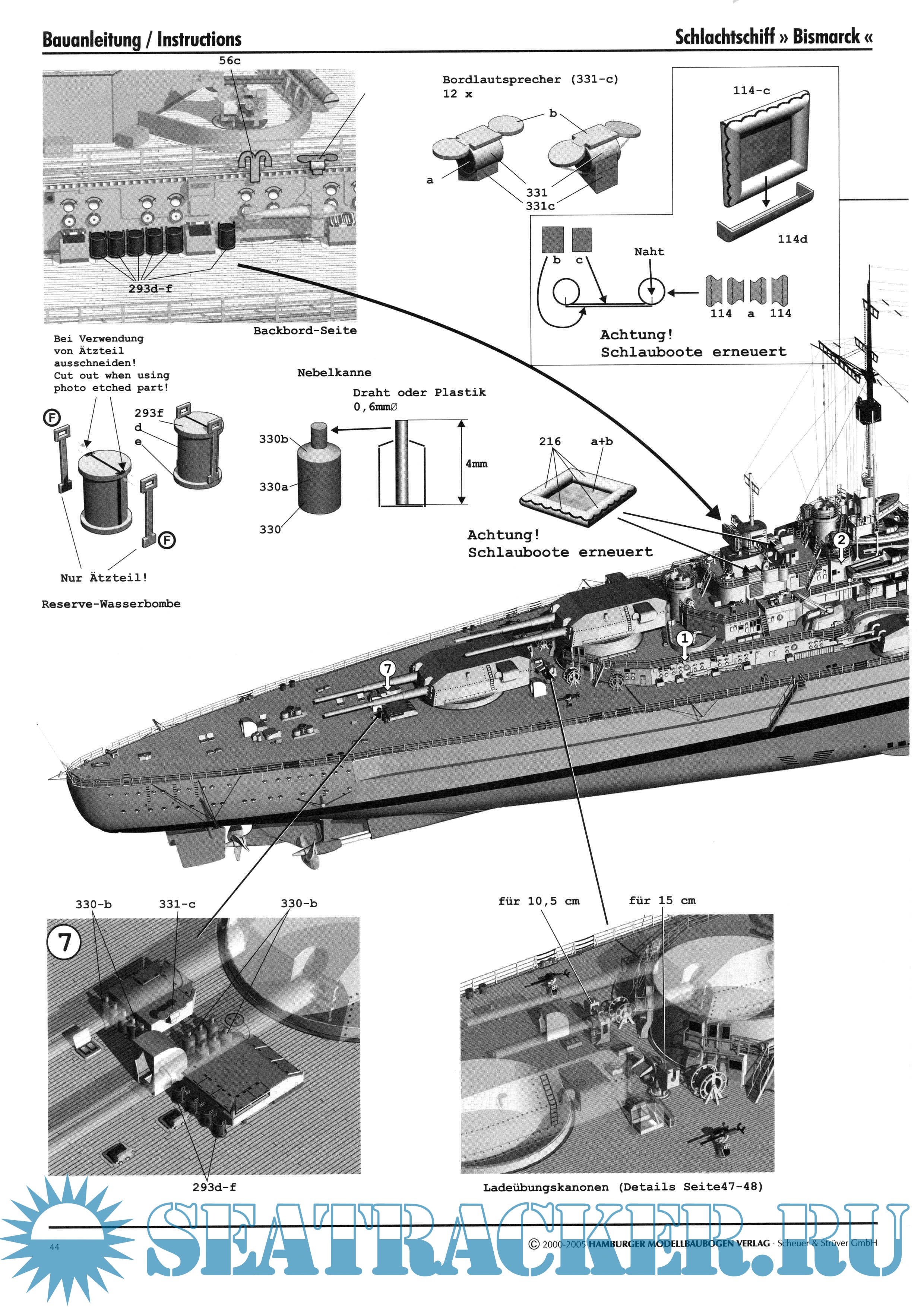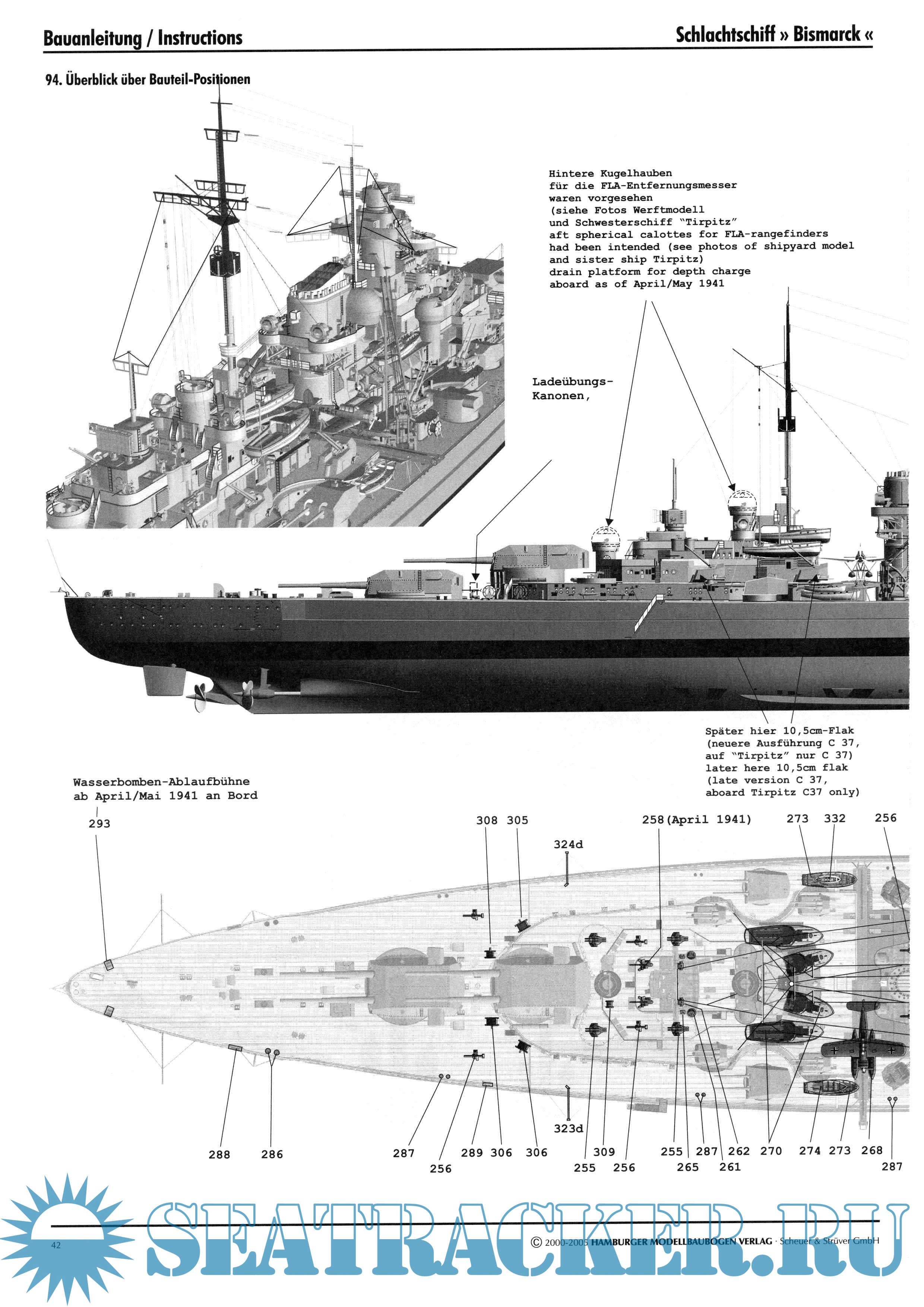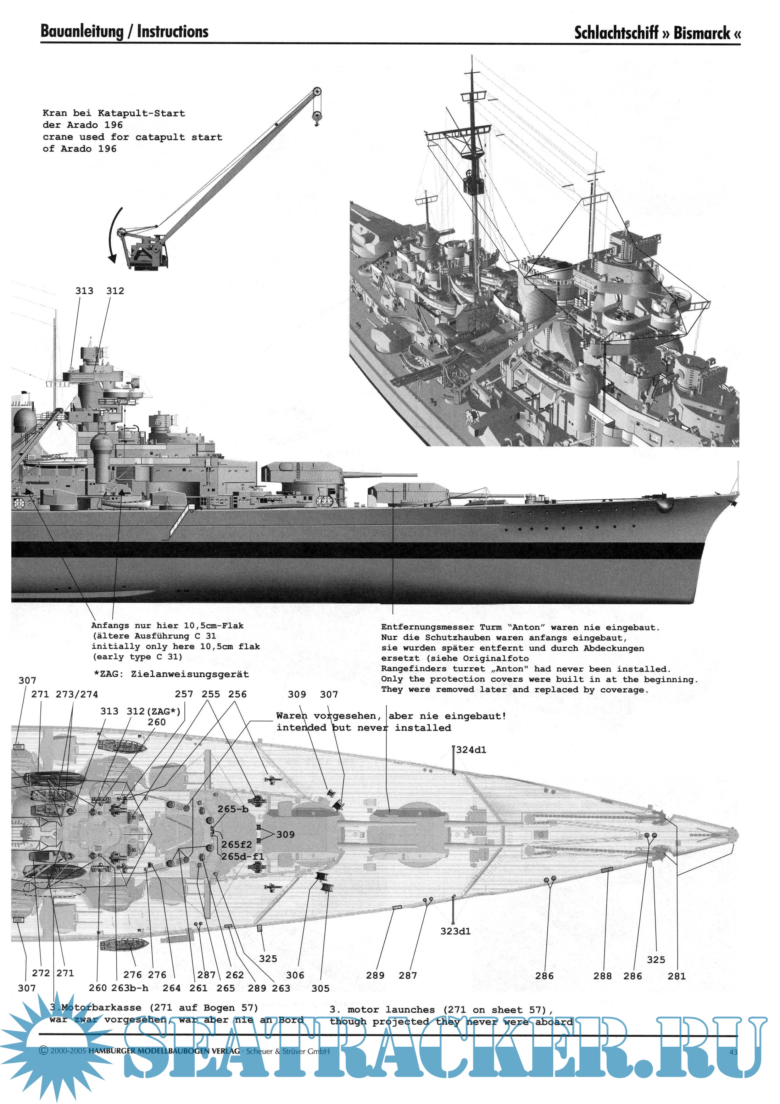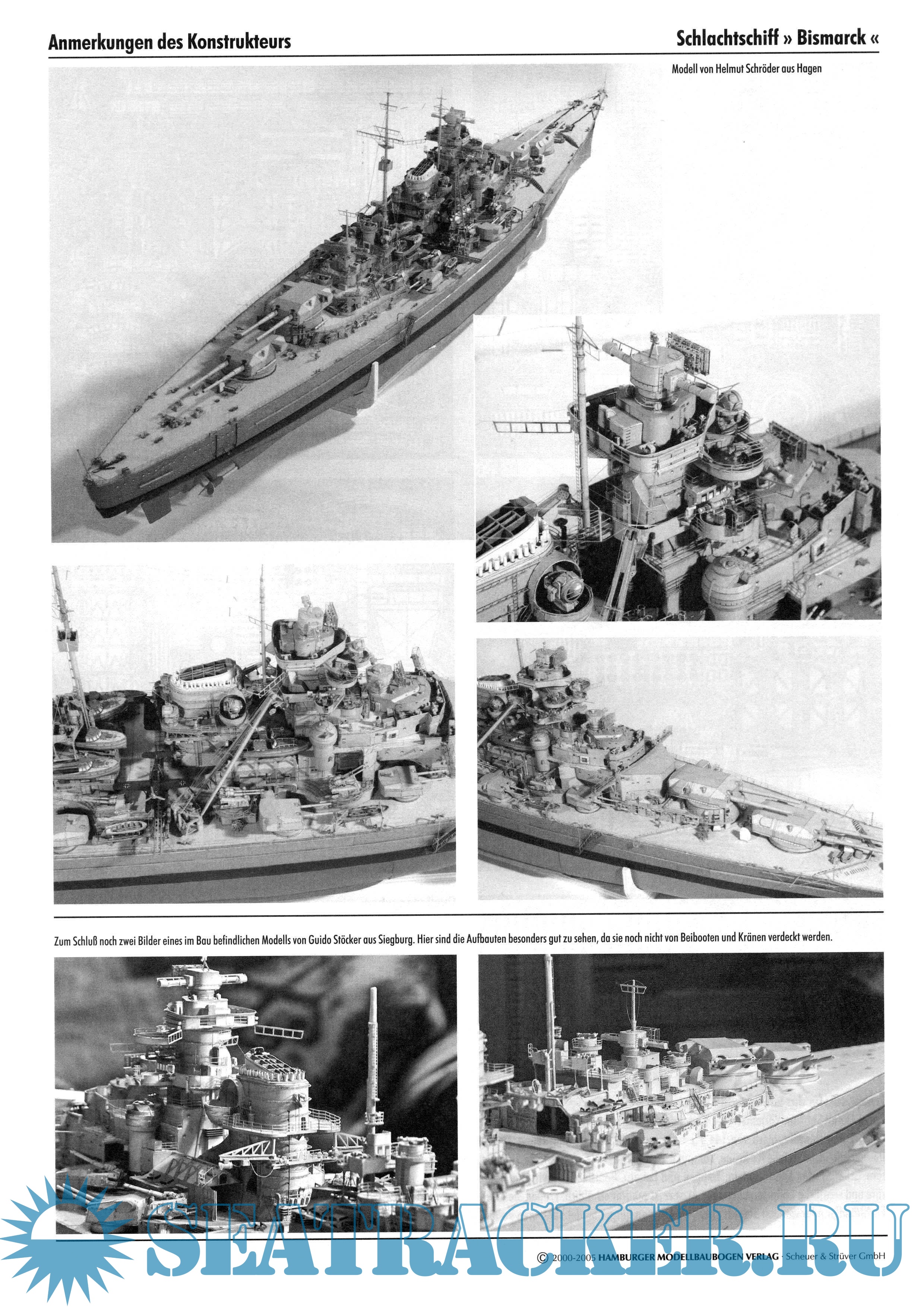 118 листов цветных выкроек и инструкций для изготовления бумажной модели немецкого линкора BISMARCK 1940 год в масштабе 1:250Скриншоты