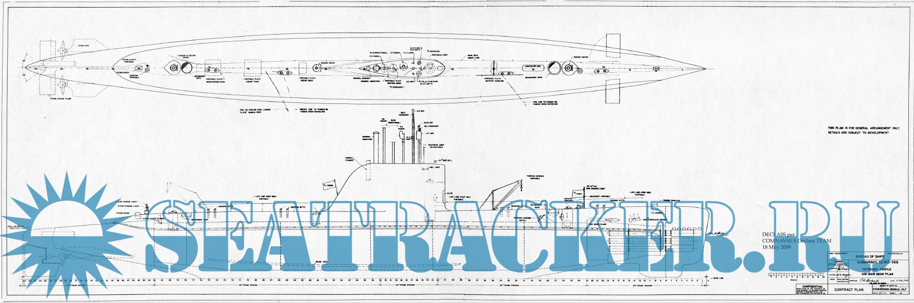 Описание: 22 листа архивных чертежей подводной лодки SS-563 - USS Tang (США) 1948 год