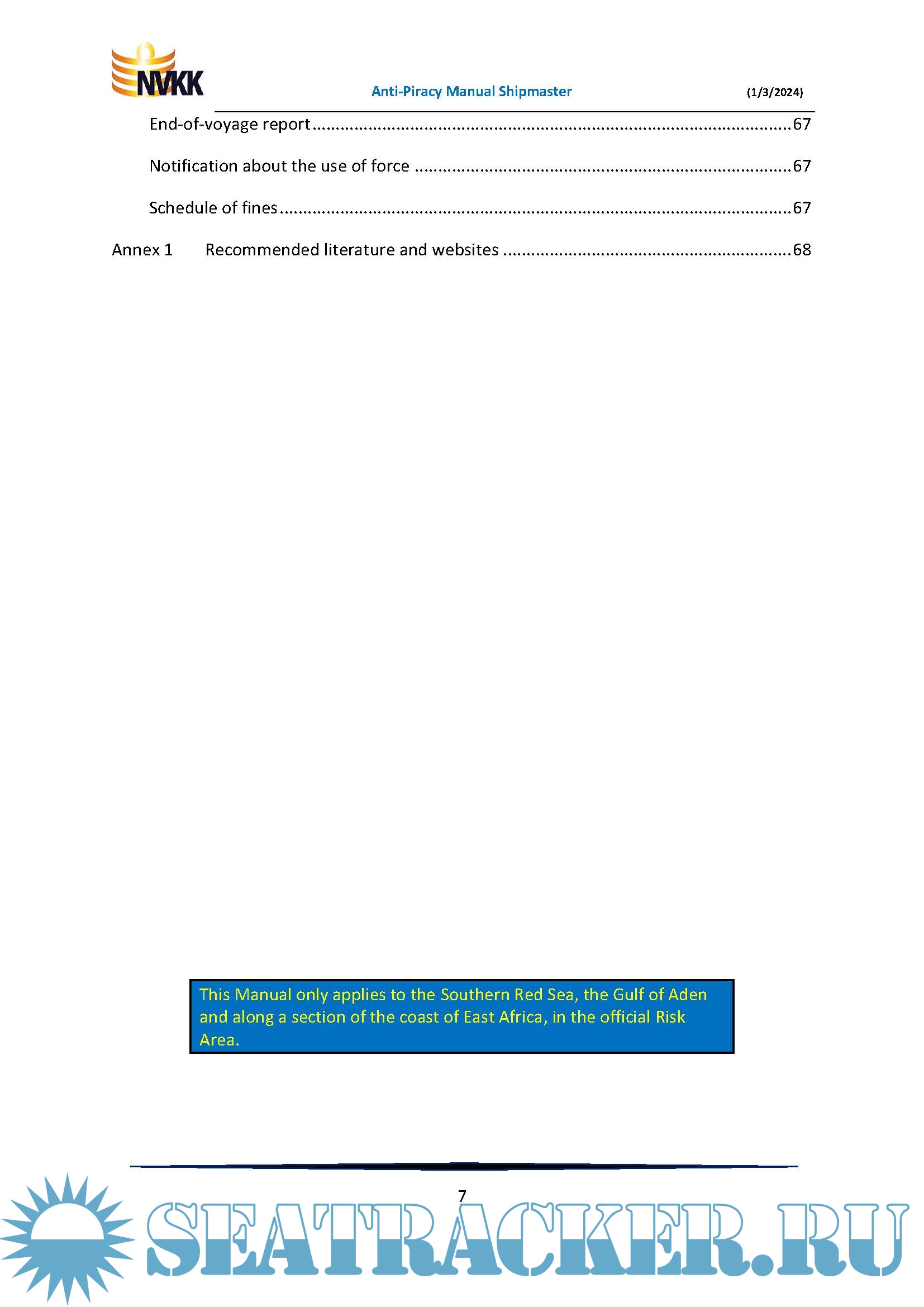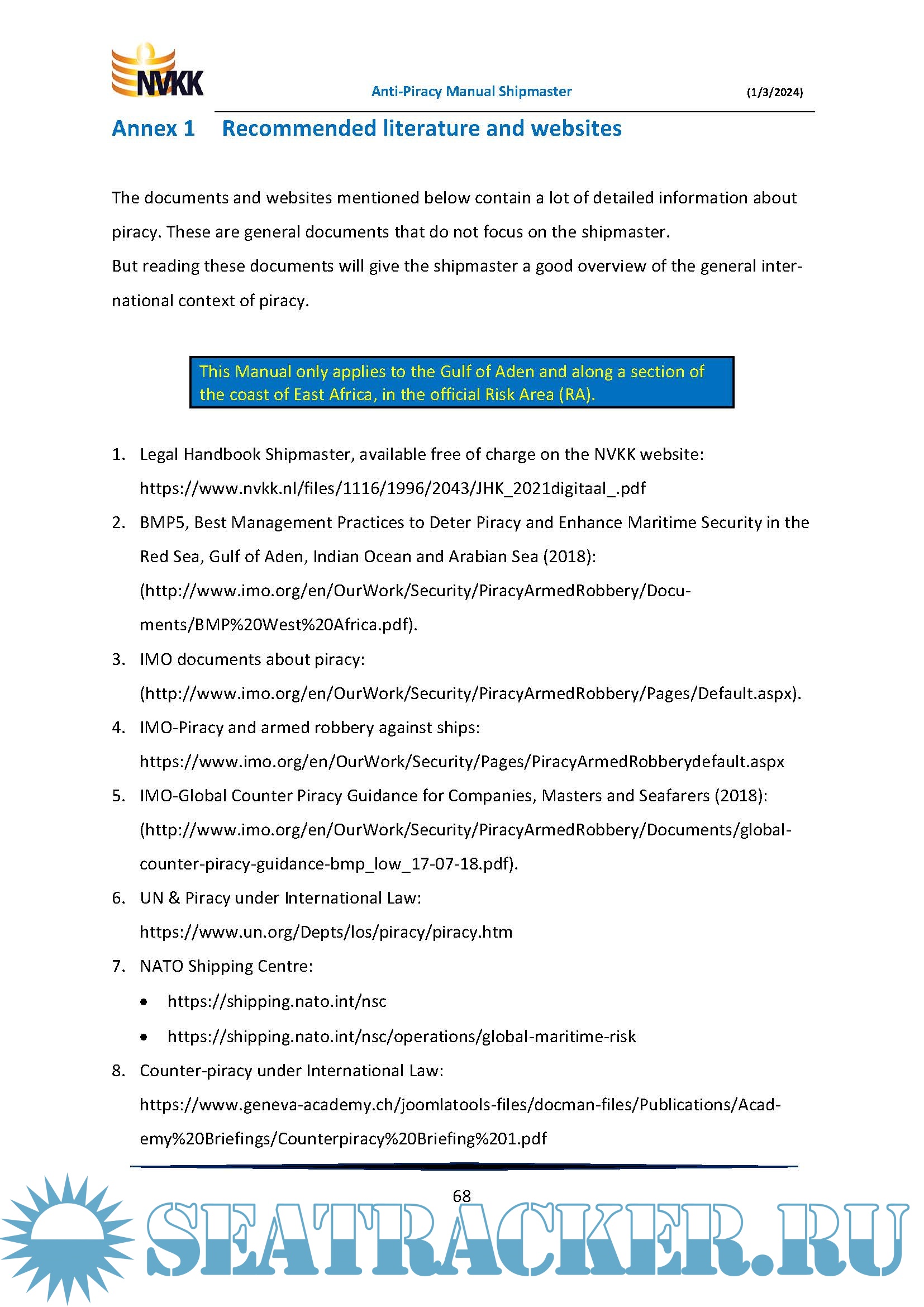 Additional info: This Manual only applies to the Gulf of Aden and along a section of the coast of East Africa.