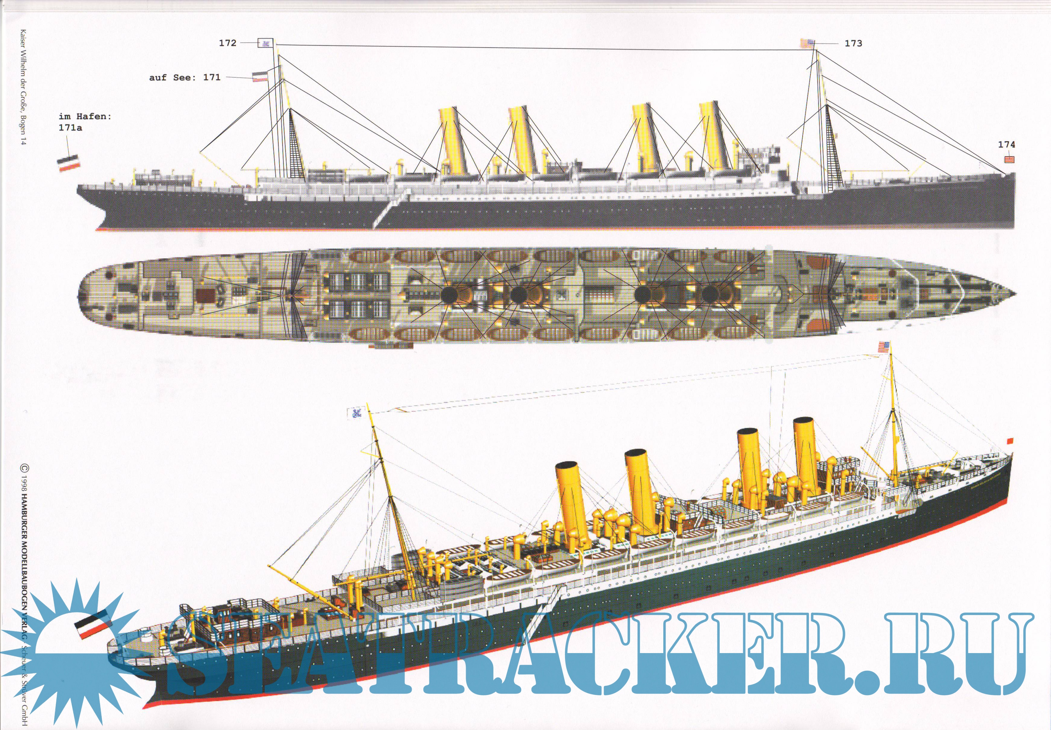 41 лист цветных выкроек и инструкций для изготовления бумажной модели германского океанского лайнера Kaiser Wilhelm der Grosse, 1897г в масштабе 1:250Скриншоты