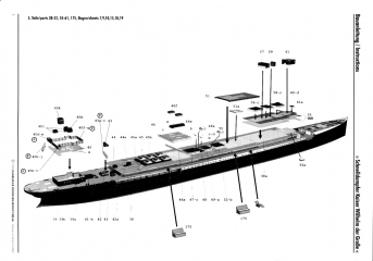 Описание: 41 лист цветных выкроек и инструкций для изготовления бумажной модели германского океанского лайнера Kaiser Wilhelm der Grosse, 1897г в масштабе 1:250