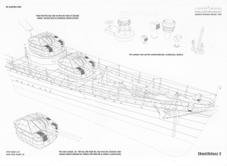 Description: Number 38 in this series is about the famous Japanses Destroyer Akizuki of WW2. Scale plans include main superstructure details from 1942, at various levels, navigation bridge, upper deck, funnel, artillery/batteries director, turrets, masts, radar antennas, cutaways, etc. As a bonus there A3 (A4) size sheet with top & side views of the battleship and her details. All drawings are first class and you can use them to add much more detail to your scale kit using plasticard or other materials.