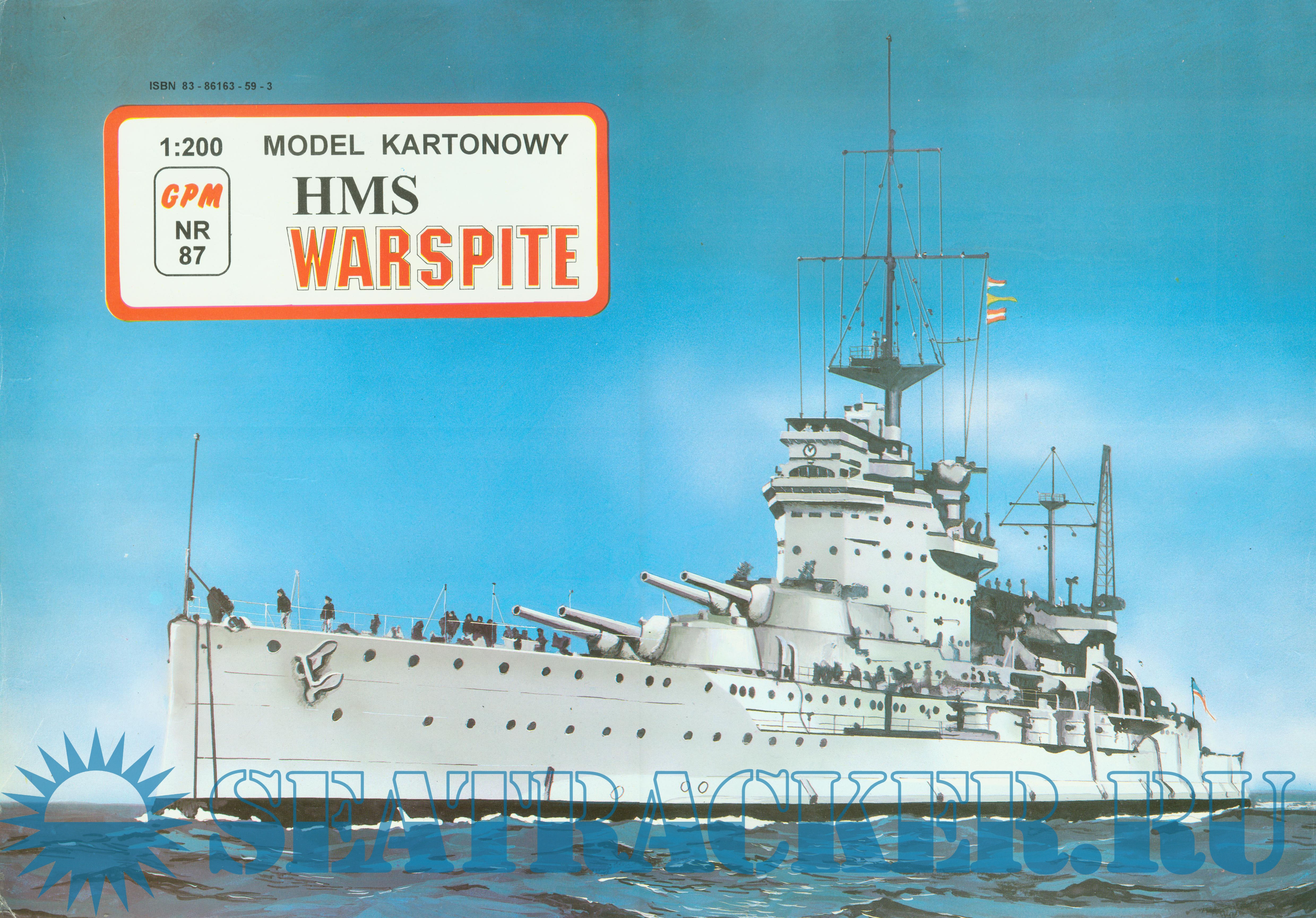 Описание: 17 листов цветных выкроек и инструкций для изготовления бумажной модели линейного корабля HMS Warspite 1913 горд Великобритания в масштабе 1:200