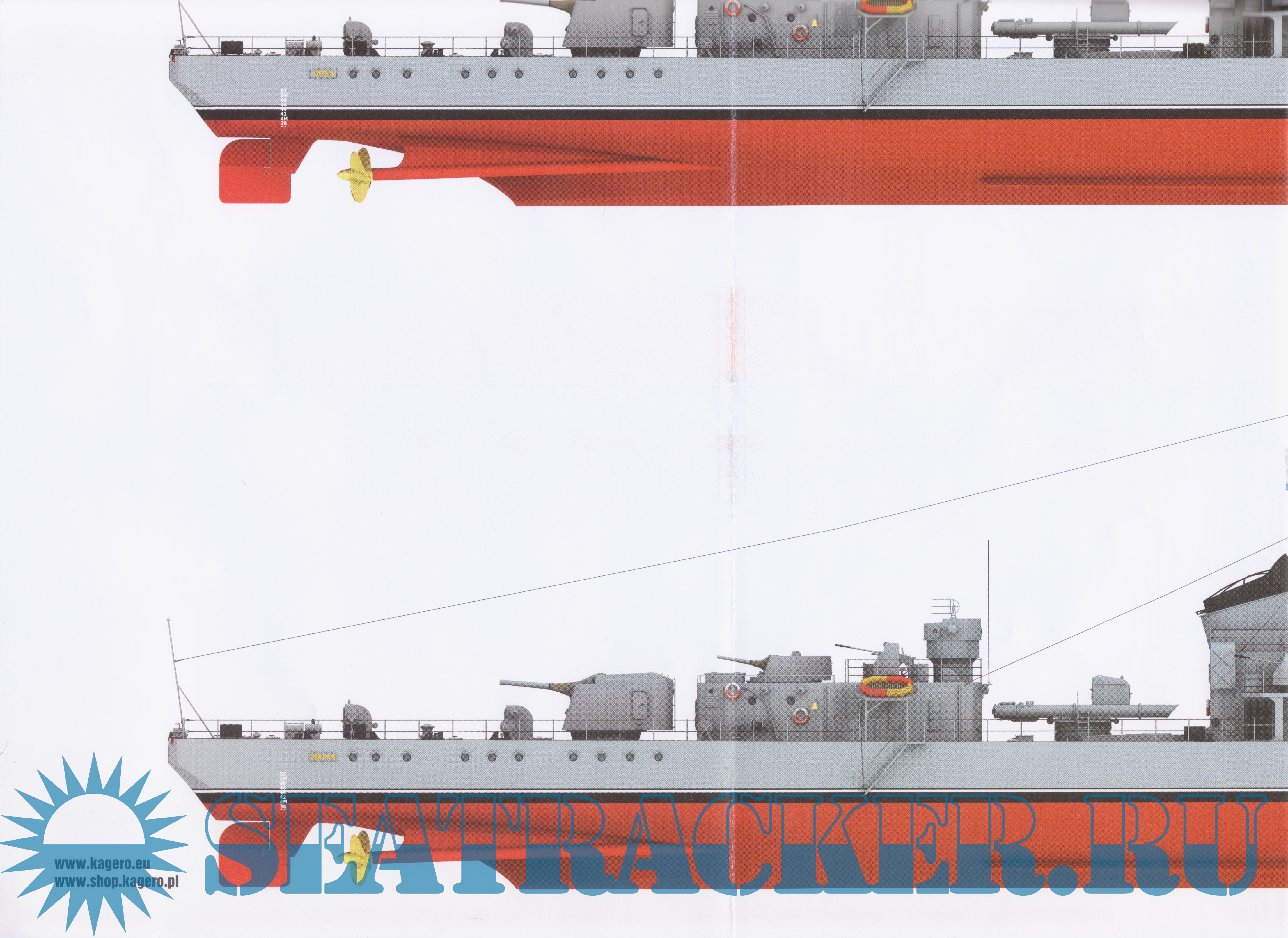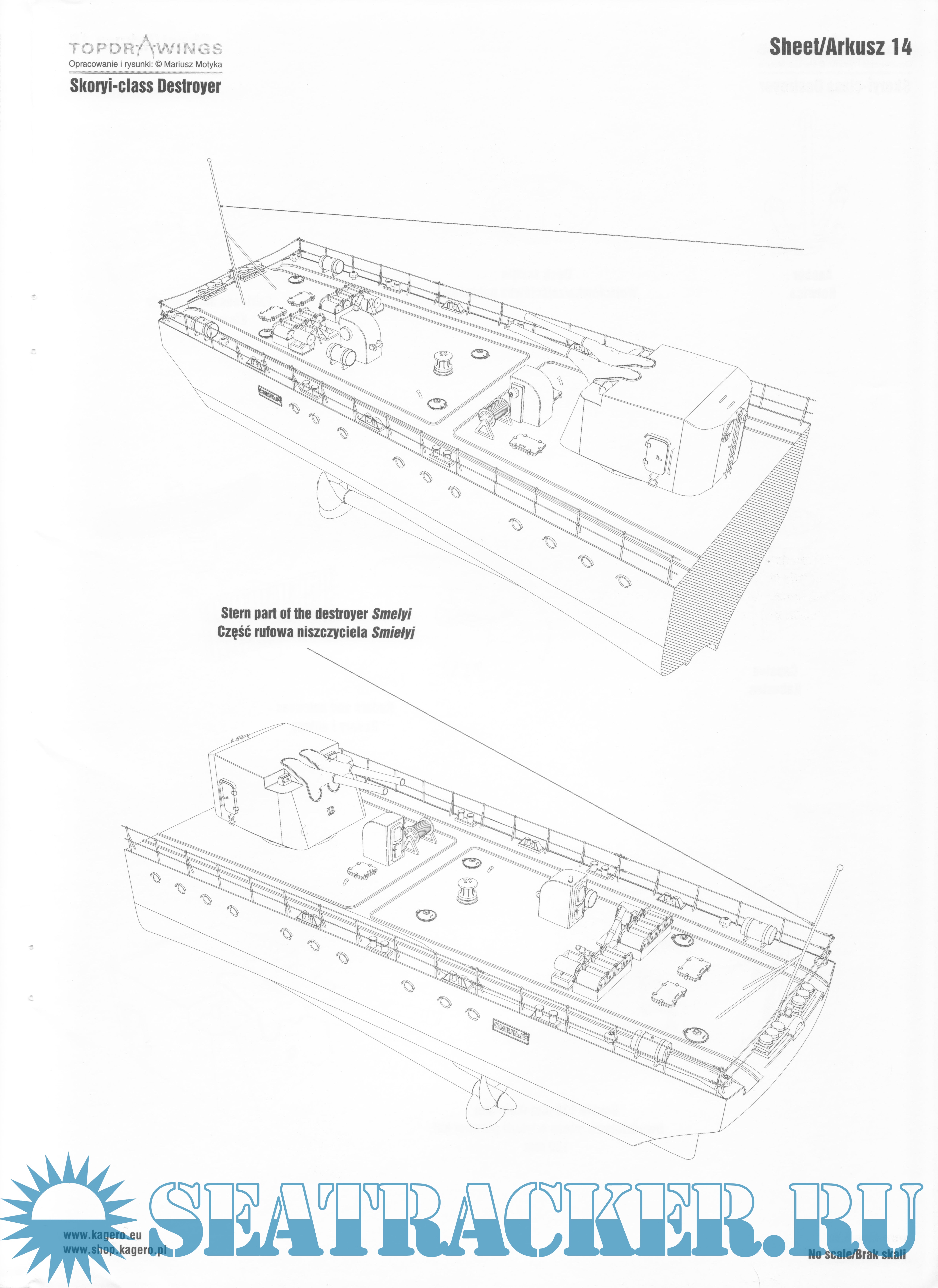 Description: Number 82 in this series is about the famous Skoryi class Destroyer. Scale plans include main superstructure details from 1961, at various levels, navigation bridge, upper deck, funnel, artillery/batteries director, turrets, masts, radar antennas, cutaways, etc. As a bonus there A3 (A4) size sheet with top & side views of the battleship and her details. All drawings are first class and you can use them to add much more detail to your scale kit using plasticard or other materials.