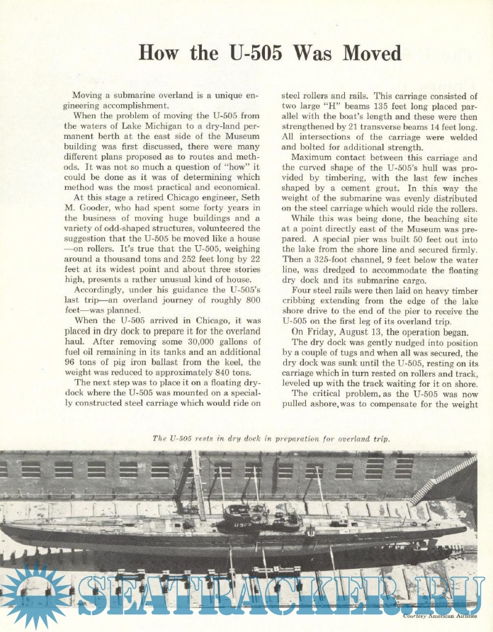 Year: 1972 Language: English Author: Chicago Museum of Science and Industry Genre: Historical Publisher: Chicago Museum of Science and Industry Format: PDF Quality: Scanned pages Pages count: 34 Description: U-505 is a German Type IXC submarine built for Germany's Kriegsmarine during World War II. It was captured by the United States Navy on 4 June 1944 and survives as a museum ship in Chicago.