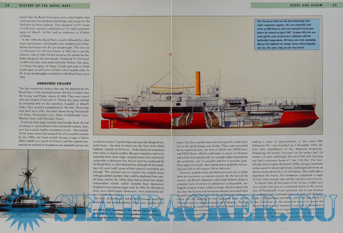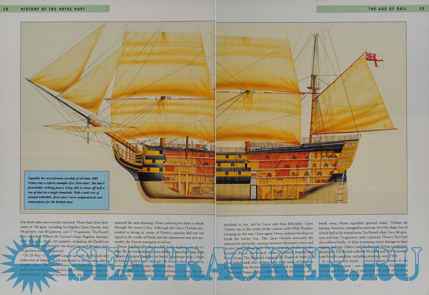 Description: Robert Jackson's book briefly describes the formation and stages of development of the British Royal Navy. The narrative begins with the age of sail and ends with modernity. All this is accompanied by artistic illustrations of ships, both black and white and color photographs of ships of the 19th and 20th century and modern and ancient paintings of sailboats.