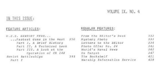 Description: From a small beginning in 1964, this quarterly journal has become internationally recognized as the most authoritative English-language publication in the warship field. Each issQuote | Copy | Translate | Webue averages 100 pages, with fact-filled articles, mainly but not exclusively the original work of our members. Subjects cover all navies and all types of ships from about 1860 to date, liberally illustrated with photographs which are highly praised for their quality, many of which have rarely been printed before, and with excellent line drawings and plans-a valuable resource for ship modelers.