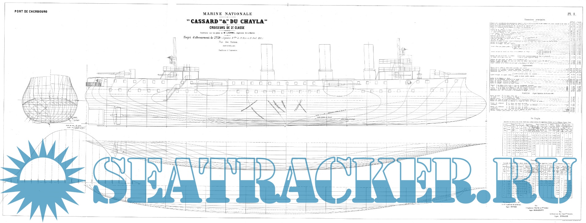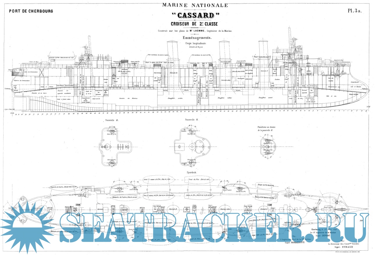 Архивные чертежи французского крейсера 2-го ранга CASSARD 1886 год