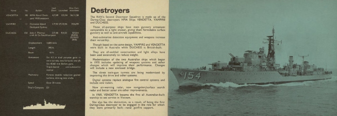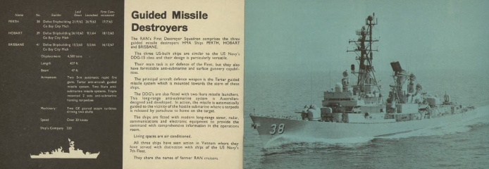 Description: The first editions of Navy Today were published in the early 1960s to provide a snapshot of the contemporary RAN Fleet and a brief commentary on operations in which the RAN was involved. The booklets were distributed by Navy Public Relations and through Navy Recruiting centres around Australia and were produced in various formats until the mid 1990s at which time web-based technology took over.