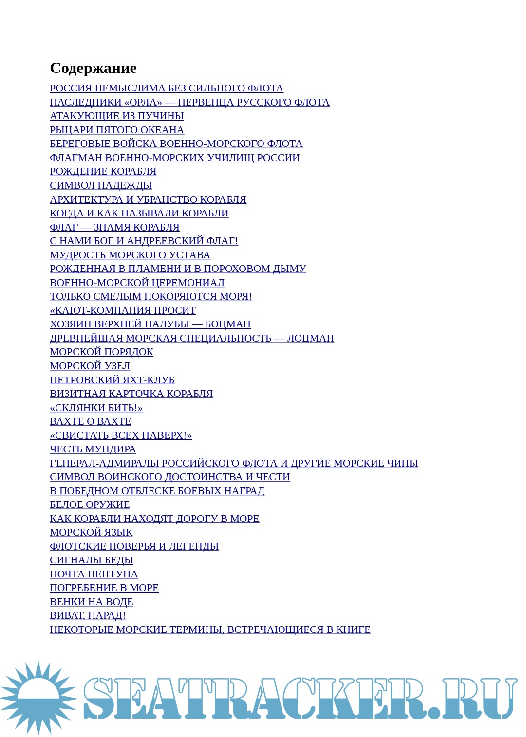 Описание: В героической истории Российского флота немало трагичных страниц. Однако за поражениями всегда следовали новые победы, небывалый прежде взлет... О славных многовековых традициях русских моряков рассказывает эта книга, написанная автором на основе личного, более чем сорокапятилетнего опыта службы в Военно-морском флоте. Изучив множество документов, а также малоизвестные, порой уникальные источники, автор создал фундаментальный, живо и интересно написанный, богато иллюстрированный труд, который наверняка порадует каждого, кто увлечен историей Российского флота, историей Отечества.