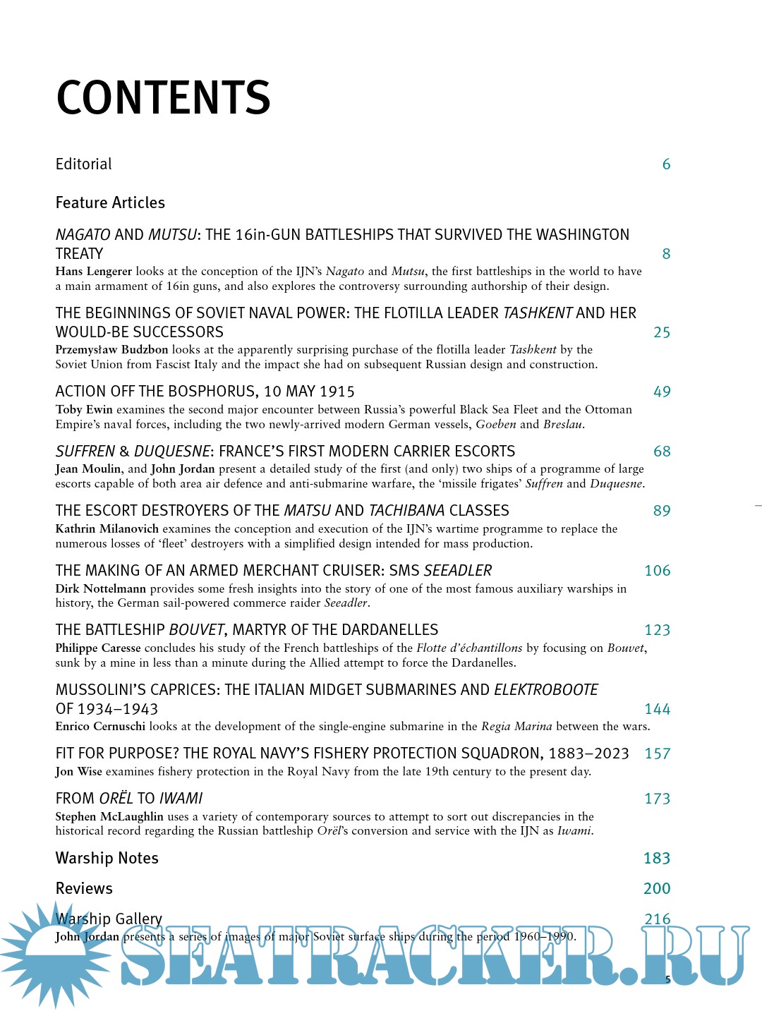 Year: 2024 Language: English Author: Collective Genre: Periodical publication Publisher: Osprey Publishing Format: PDF Quality: eBook Pages count: 226 Description: For over 40 years, Warship has been the leading annual resource on the design, development, and deployment of the world's combat ships. Featuring a broad range of articles from a select panel of distinguished international contributors, this latest volume combines original research, new book reviews, warship notes, an image gallery, and much more, maintaining the impressive standards of scholarship and research with which Warship has become synonymous. Detailed and accurate information is the keynote of all the articles, which are fully supported by plans, data tables, and stunning photographs.