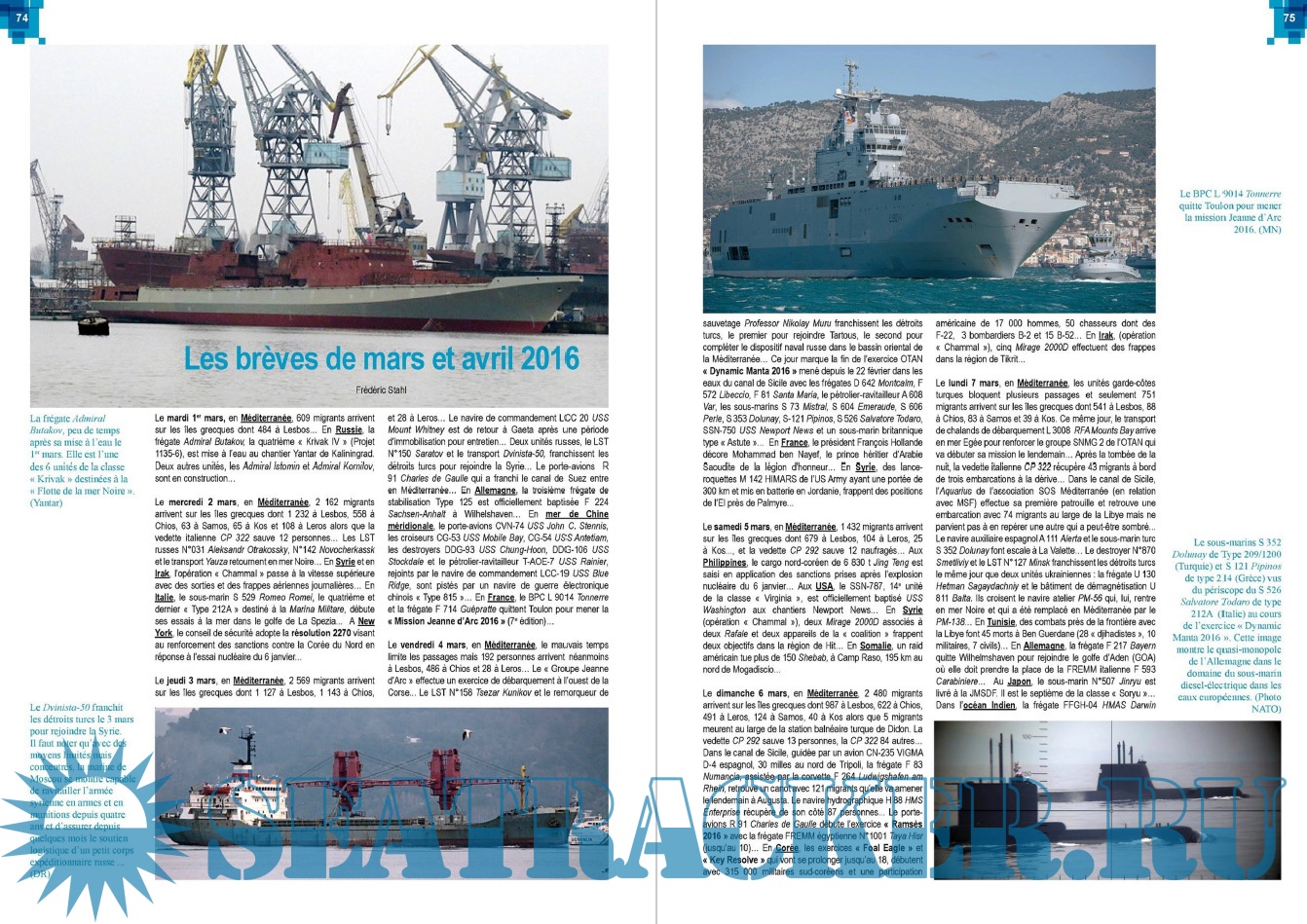 Year: 2016 Language: French Author: Lela Presse Genre: Periodical publication Edition: 2016 06-07 Format: PDF Quality: eBook Pages count: 100 Description: Publié pour la première fois en 1999, ce magazine traite l'histoire maritime, passée ou présente, de toutes les marines du monde. Une parution incontournable pour tous les férus d’histoire et d’actualité, avec une multitude de photos originales, issues pour une grande part de collections privées !... Traversez l’histoire sur toutes les mers du Monde