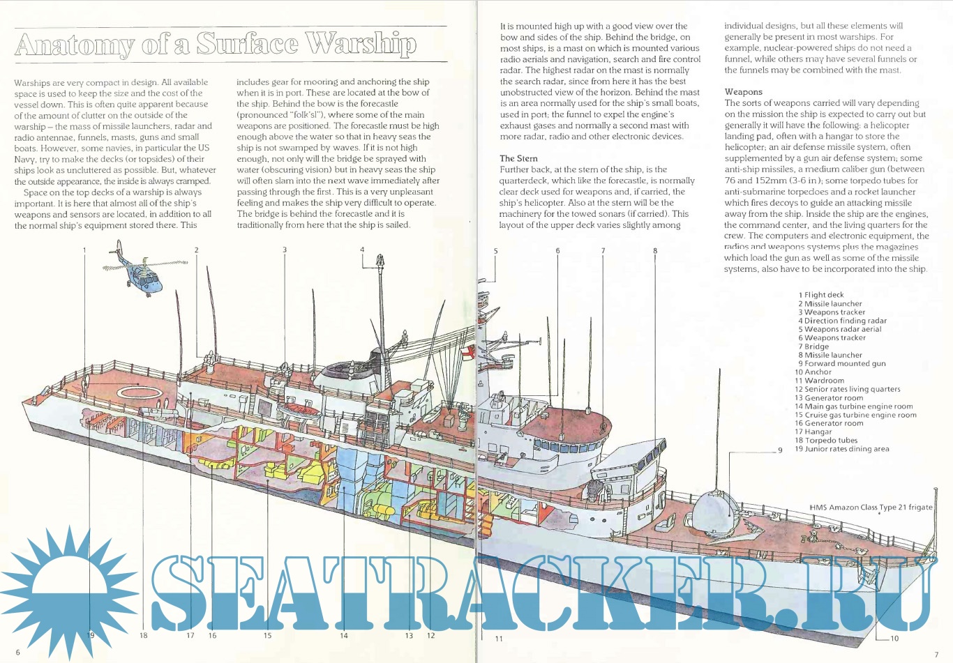 Description: Describes the characteristics of different types of modern warships and their functions. Also includes a brief overview of the history and development of battleships with a list of the famous ships.