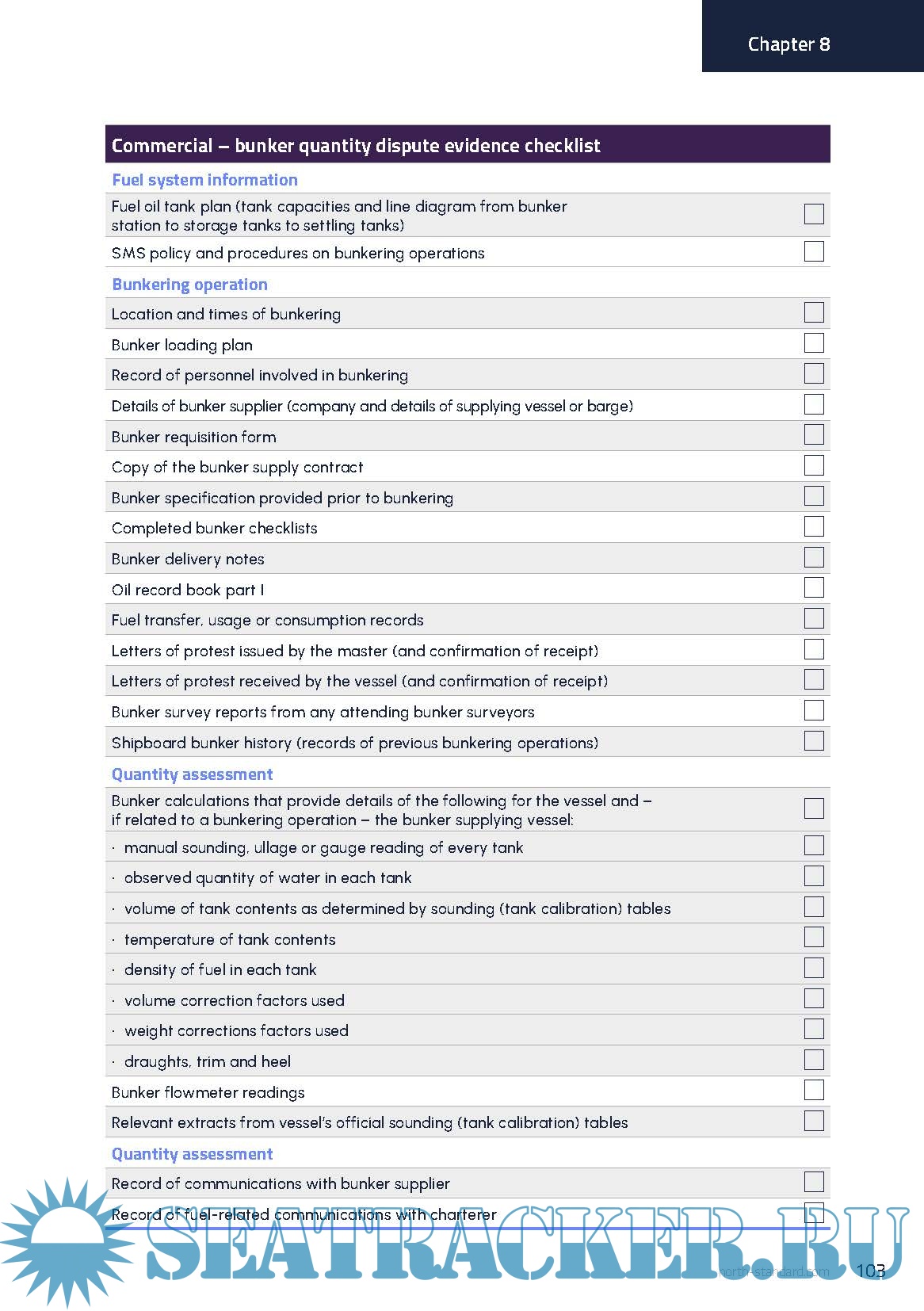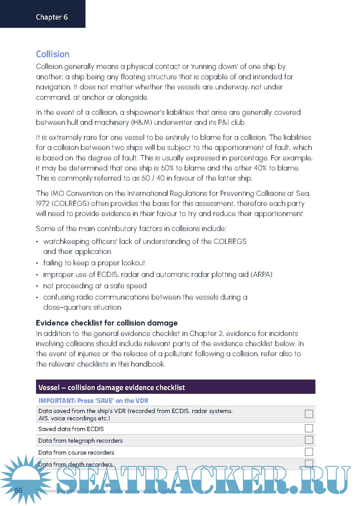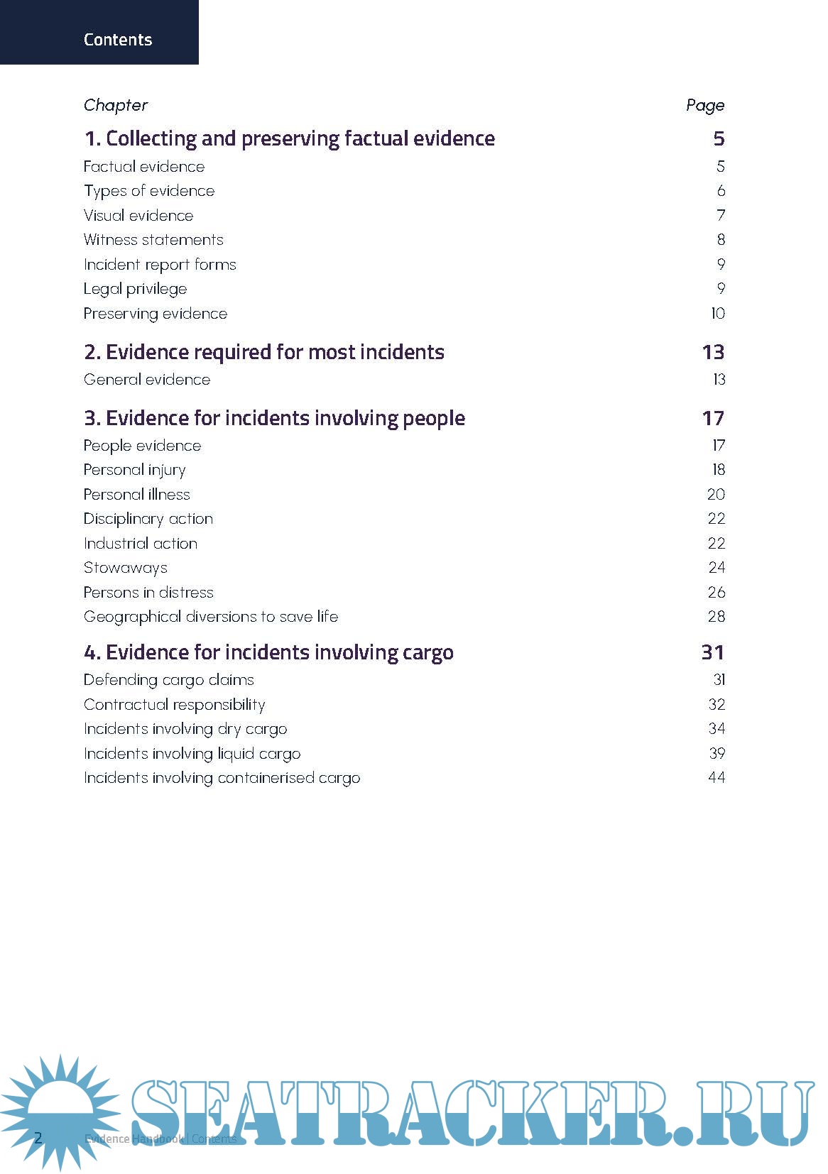 Year: 2024 Language: English Author: NorthStandard Genre: Handbook Publisher: NorthStandard Edition: 2nd Reviewed Edition (September, 2024) ISBN: 9780995565357 Format: PDF Quality: eBook Pages count: 108 Description: This handbook is about collecting and preserving factual evidence, which is vital in establishing what really happened and how it did happen. It is intended to give guidance to mariners about the different types of factual evidence relevant to the more common incidents and accidents on board ships. This will help mariners to collect and preserve the very best evidence. This publication equips readers with the knowledge necessary to demonstrate a ship’s compliance, improve shipboard operations and determine liability when pursuing or defending a claim. Evidence checklists cover areas such as personal illness and performance warranty disputes, meaning crew are prepared for various eventualities. Detail is given on digital evidence types, explaining the practical use of electronic devices such as ECDIS and mobile phones. The publication guides readers on good reporting practice and time management, so that all evidence can be handled sensitively and without delay. Example checklists (fillable) of evidence for the more common incidents are included in this handbook. The checklists are not exhaustive, but they provide comprehensive guidance to the nature and extent of evidence that may be required.