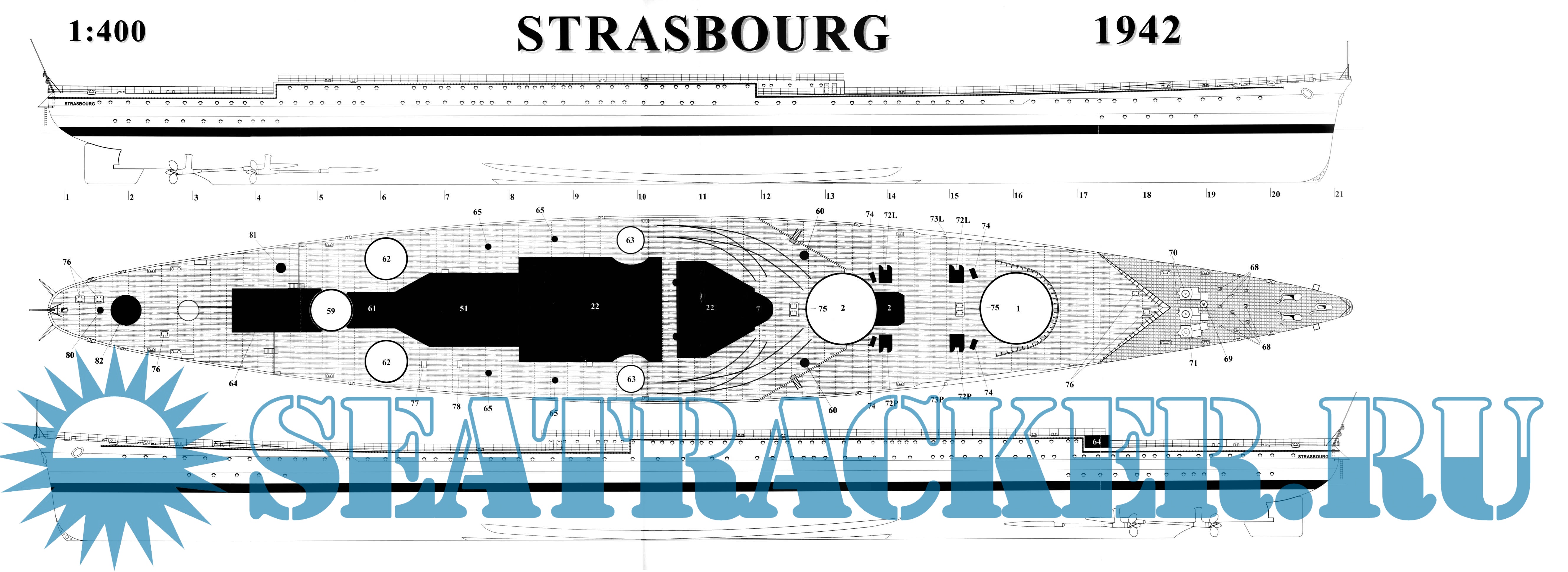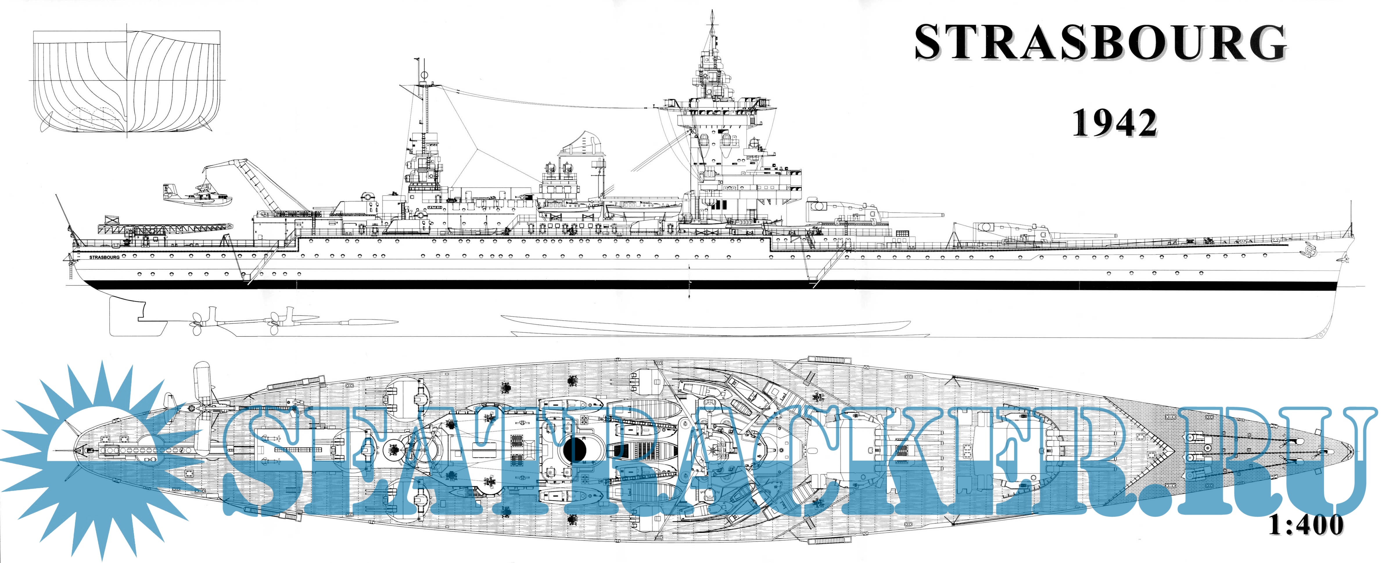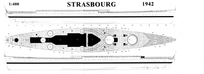 Описание: 17 листов чертежей французского линкора Strasbourg 1942 год