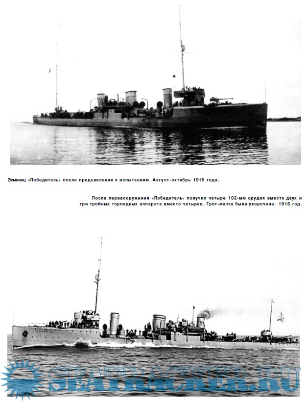 Краткая история кораблей включает их службу на всех театрах, а также службу в ВМС зарубежных государств - Эстонии и Перу. Для каждого типа эсминцев приведены хронологические таблицы и тактико-технические характеристики на разные периоды службы.