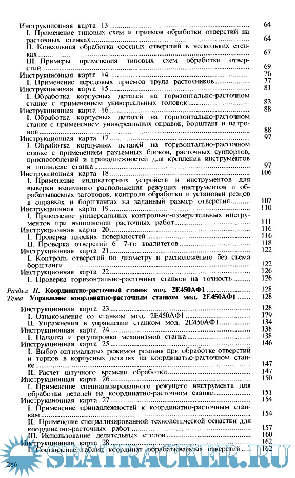 Описание: Содержаться разработанные в виде инструкционных карт указания по обучению работе на вертикально-расточных, горизонтально-расточных, координатно-расточных и расточных станках с ЧПУ; даны приемы наладки и управления станками и обработка корпусных деталей; приведены сведения об организации рабочего места, безопасности труда и техническом контроле деталей.