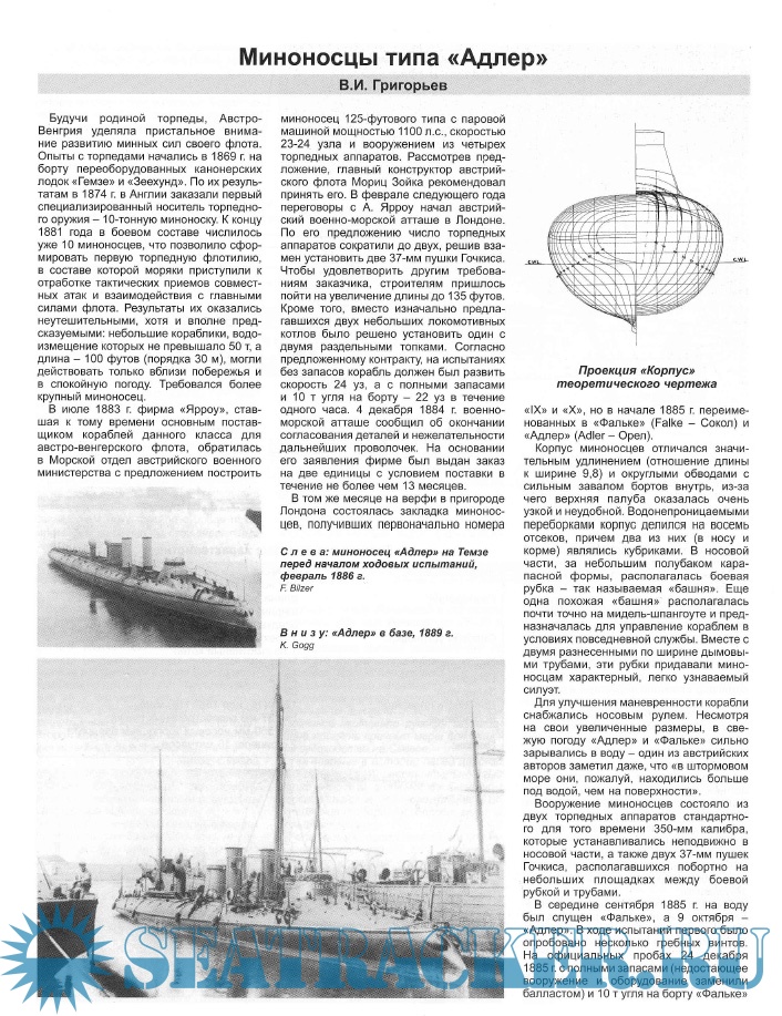 Материалы Романа Витальевича Лапшина (г. Запорожье, Украина), Сергея Владимировича Патянина (г. Саров Нижегородской обл.) и Виталия Ивановича Григорьева (Нижний Новгород) посвящены малоизвестным кораблям отечественного и зарубежного флотов.