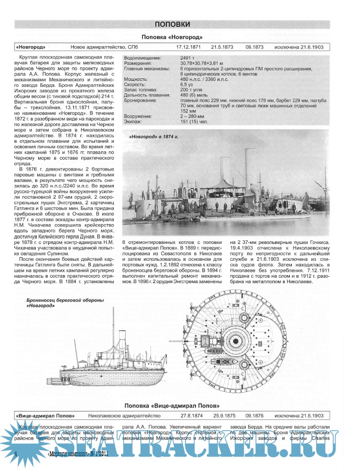 Год выпуска: 2011 Язык: Русский Автор: группа авторов Жанр: Периодическое издание (журнал) Издание: 2011-01 Формат: PDF Качество: Изначально компьютерное (eBook) Количество страниц: 68 Описание: Основным материалом данного сборника является справочник по корабельному составу российского Черноморского флота в период русско-турецкой войны 1877-1878 гг. Его автор - Виктор Вениаминович Яровой (г. Новокузнецк). Оригинальные схемы для справочника подготовил И.И. Николаевский. Обращаем ваше внимание, что в следующем номере нашего журнала будет опубликовано продолжение, посвященное кораблям турецкого флота. Статья шведского историка Курта Боренстама (Curt Borgenstam) рассказывает о самой многочисленной серии броненосцев береговой обороны этой Скандинавской страны. Перевод с английского выполнил М.Б. Князев, графику - Е. Левандовский (Jerzy Lewandowski, Польша). Материалы Романа Витальевича Лапшина (г. Запорожье, Украина), Сергея Владимировича Патянина (г. Саров Нижегородской обл.) и Виталия Ивановича Григорьева (Нижний Новгород) посвящены малоизвестным кораблям отечественного и зарубежного флотов.