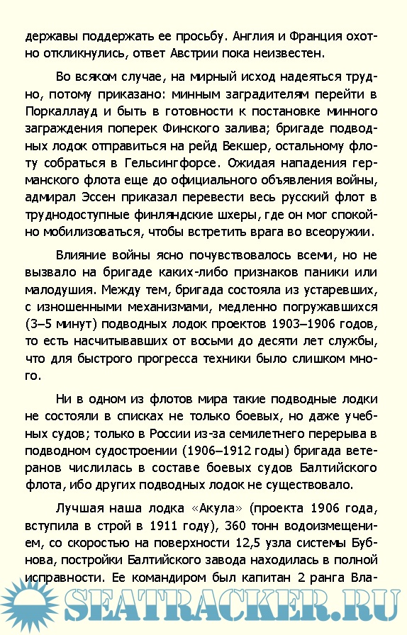 Описание: Василий Александрович Меркушов – один из первых офицеров-подводников России, начавший службу еще в 1905 году. Это было время, когда все в русском подплаве происходило впервые, когда закладывались традиции и формировался новый тип офицеров для этого нового, революционного для начала XX века оружия. Первую мировую войну В.А. Меркушов встретил в качестве командира подводной лодки «Окунь». В своих дневниках он описывает кампании 1914 и 1915 года на Балтике, за которые он был удостоен ордена Святого Георгия IV степени и Георгиевского оружия, показывает беспримерное мужество русских моряков-подводников, их бесстрашие и верность воинскому долгу.