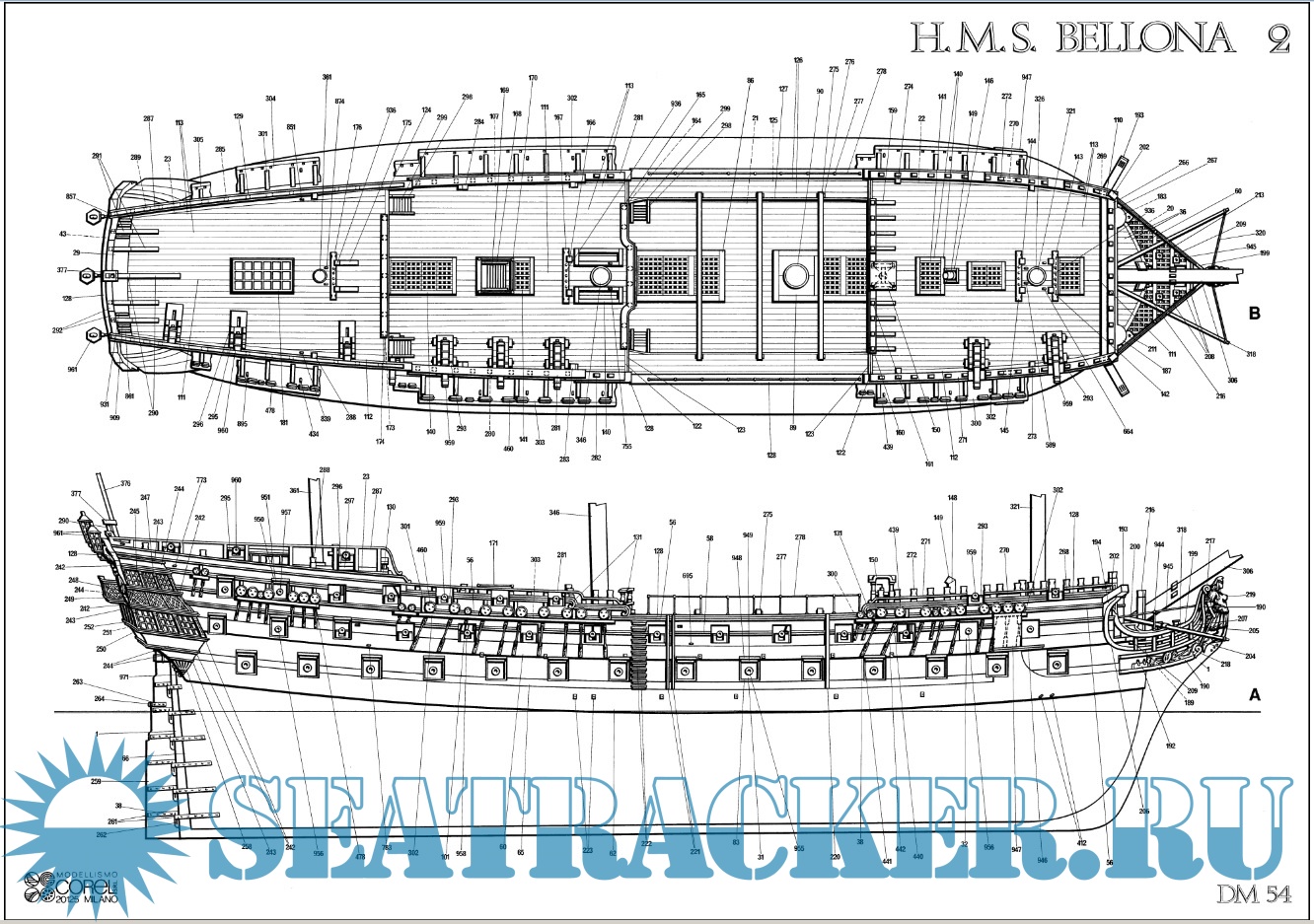 Чертежи и руководство по изготовлению модели парусного корабля HMS Bellona - Corel