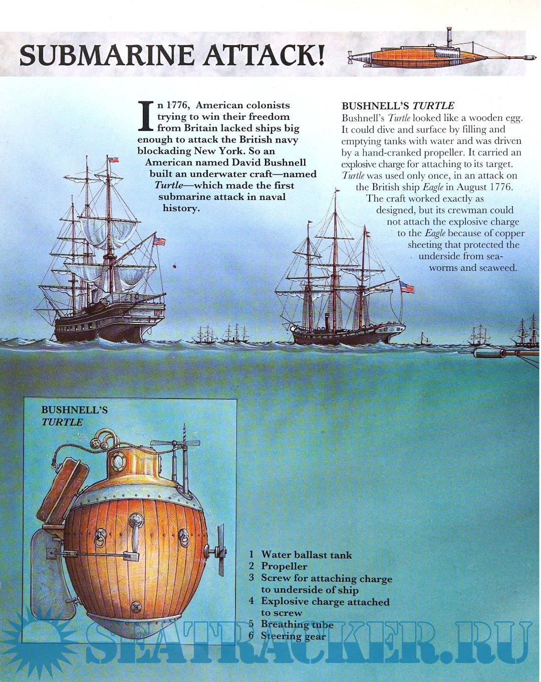 Description: From primitive reed boats to modern super carriers the size of small cities, the fascinating history of submarines and ships is revealed in double-page, see-through spreads of a Roman merchant vessel, massive Chinese junks, a luxury passenger ship, and more.