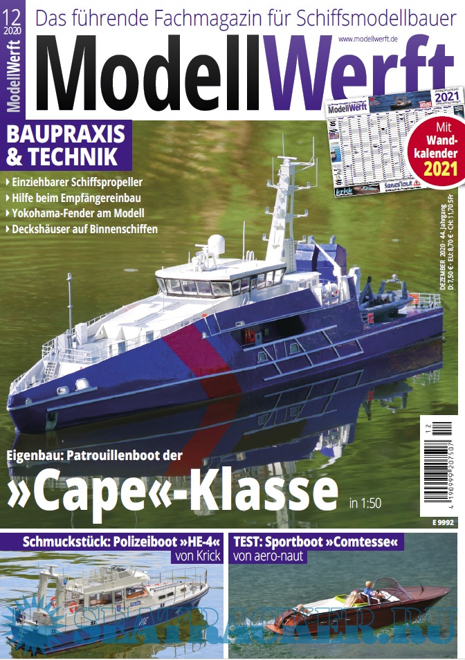 Year: 2020 Language: German Author: Eric Schafenrort (Redaktor) Genre: Periodical publication Edition: 2020-12 Format: PDF Quality: eBook Pages count: 84 Description: Das führende Fachmagazin für Schiffsmodellbauer. Egal ob Stand- oder Fahrmodell, ob kleines Segelboot oder gigantisches Kreuzfahrtschiff. Die Modellwerft informiert über Neuheiten, hilft mit Bautipps und fasziniert mit besonderen Reportagen.