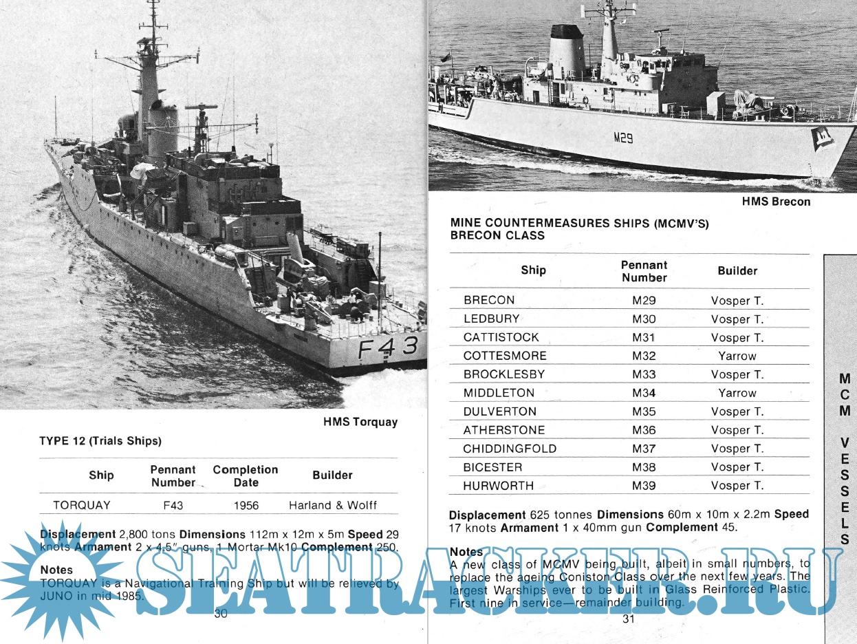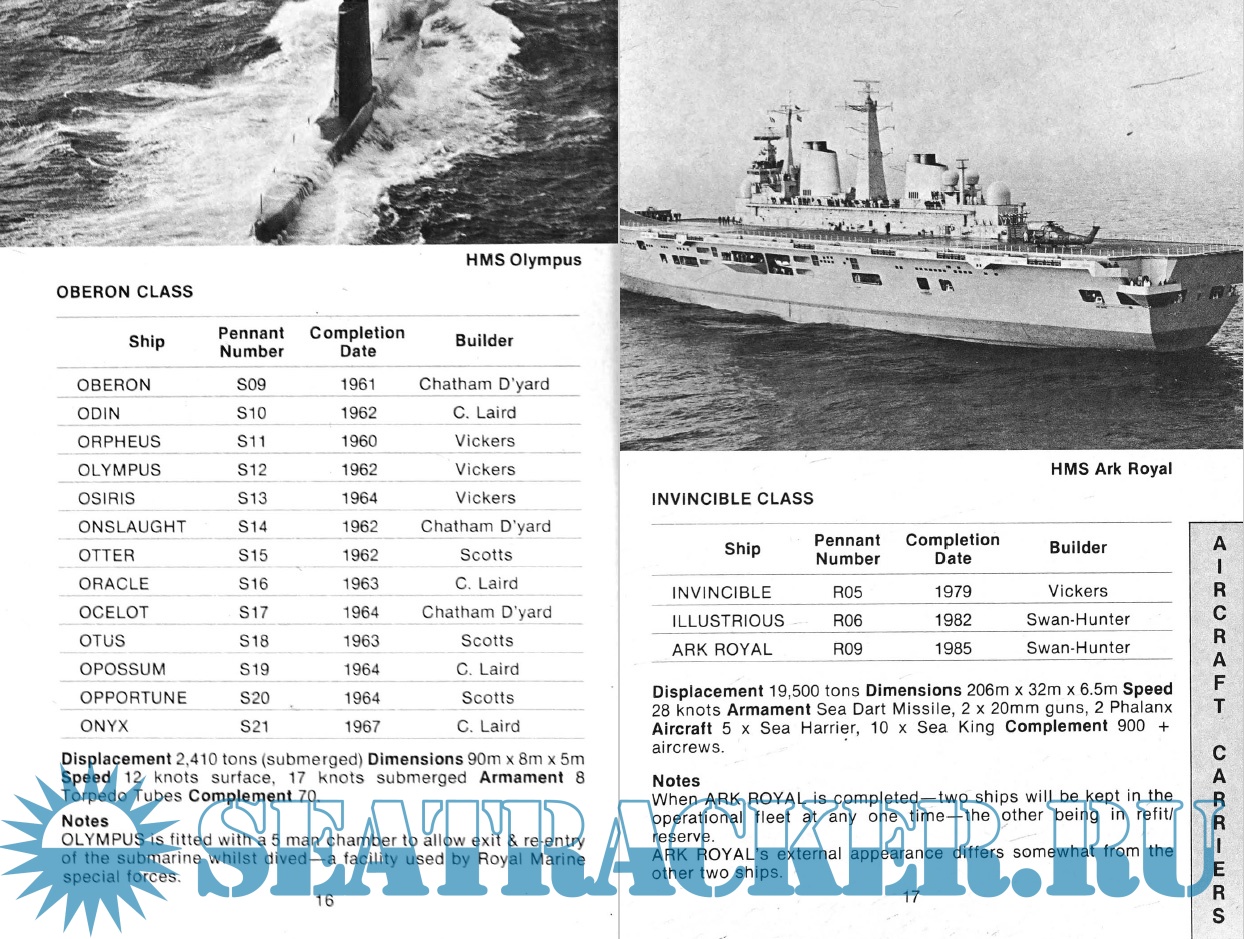 Year: 1985 Language: English Author: Mike Critchley Genre: Catalog, Encyclopedia, Historical Publisher: Maritime Books Format: PDF Quality: eBook Pages count: 116 Description: This revised and updated guide to Ships, Aircraft and Armaments of the Royal Navy has now been expanded to include ships of the Royal Marines and the Border Agency as of 1986. The book begins with a detailed overview of the current state of the Royal Navy, followed by sections detailing the fleets of the Royal Navy, Royal Navy auxiliary vessels and support vessels operated under contract. This also includes vessels of the Royal Marines, Land Forces and Border Troops. This volume, which contains color images for each class of ships, also contains silhouettes, class lists, pennant numbers, technical specifications and brief notes. At the end of the book is a list of ships mothballed in the United Kingdom and performing a secondary role after decommissioning, as well as a brief description of ships that have been scrapped since the publication of the previous edition.