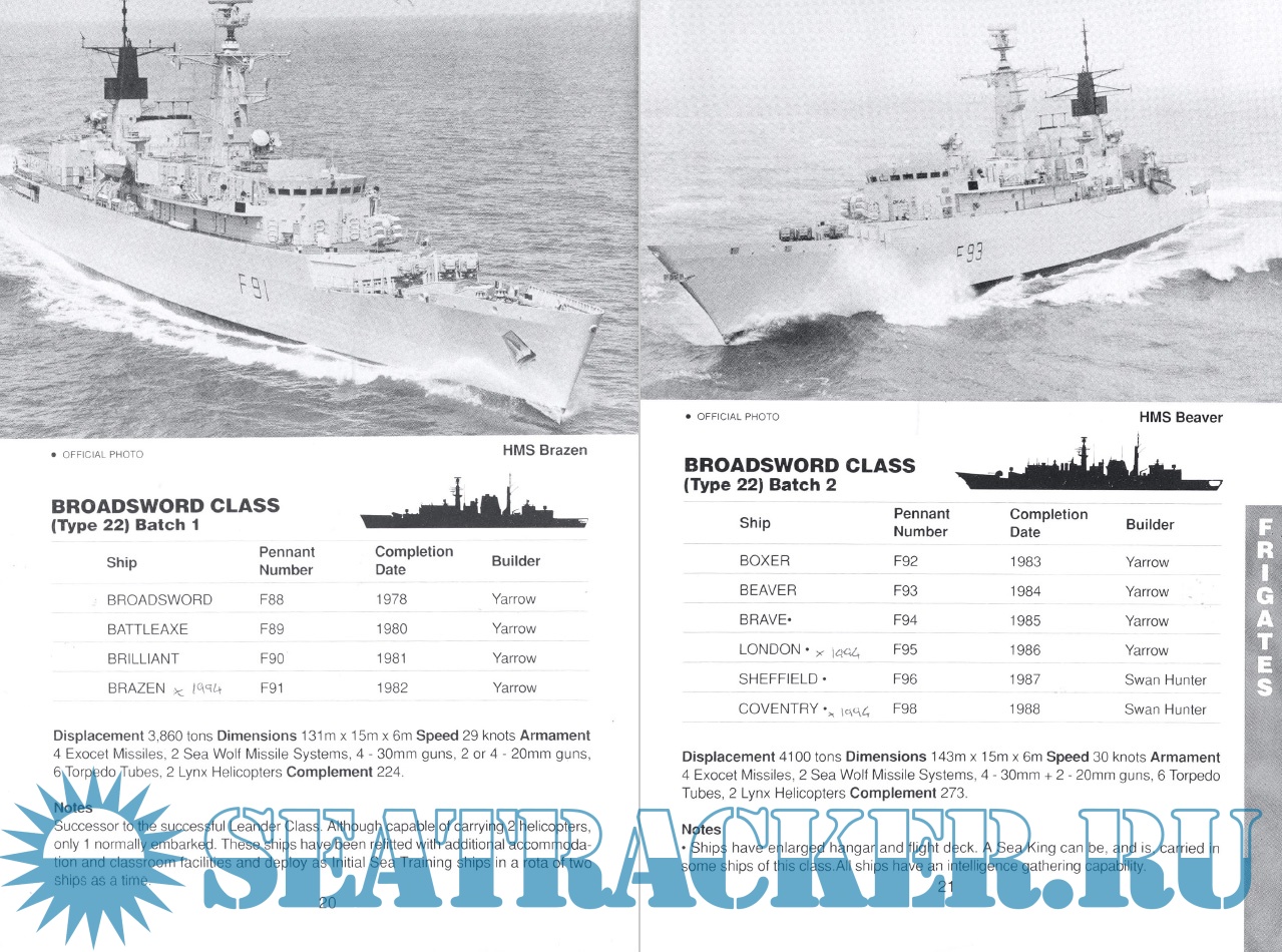 Year: 1995 Language: English Author: Mike Critchley Genre: Catalog, Encyclopedia, Historical Publisher: Maritime Books Format: PDF Quality: Scanned pages Pages count: 100 Description: This revised and updated guide to Ships, Aircraft and Armaments of the Royal Navy has now been expanded to include ships of the Royal Marines and the Border Agency as of 1995. The book begins with a detailed overview of the current state of the Royal Navy, followed by sections detailing the fleets of the Royal Navy, Royal Navy auxiliary vessels and support vessels operated under contract. This also includes vessels of the Royal Marines, Land Forces and Border Troops. This volume, which contains color images for each class of ships, also contains silhouettes, class lists, pennant numbers, technical specifications and brief notes. At the end of the book is a list of ships mothballed in the United Kingdom and performing a secondary role after decommissioning, as well as a brief description of ships that have been scrapped since the publication of the previous edition.