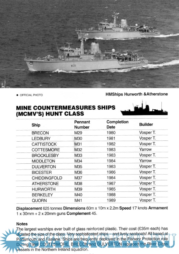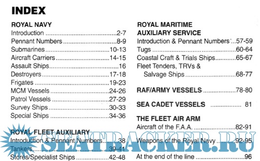 Year: 2001 Language: English Author: Mike Critchley Genre: Catalog, Encyclopedia, Historical Publisher: Maritime Books Format: PDF Quality: Scanned pages Pages count: 99 Description: This revised and updated guide to Ships, Aircraft and Armaments of the Royal Navy has now been expanded to include ships of the Royal Marines and the Border Agency as of 2001. The book begins with a detailed overview of the current state of the Royal Navy, followed by sections detailing the fleets of the Royal Navy, Royal Navy auxiliary vessels and support vessels operated under contract. This also includes vessels of the Royal Marines, Land Forces and Border Troops. This volume, which contains color images for each class of ships, also contains silhouettes, class lists, pennant numbers, technical specifications and brief notes. At the end of the book is a list of ships mothballed in the United Kingdom and performing a secondary role after decommissioning, as well as a brief description of ships that have been scrapped since the publication of the previous edition.