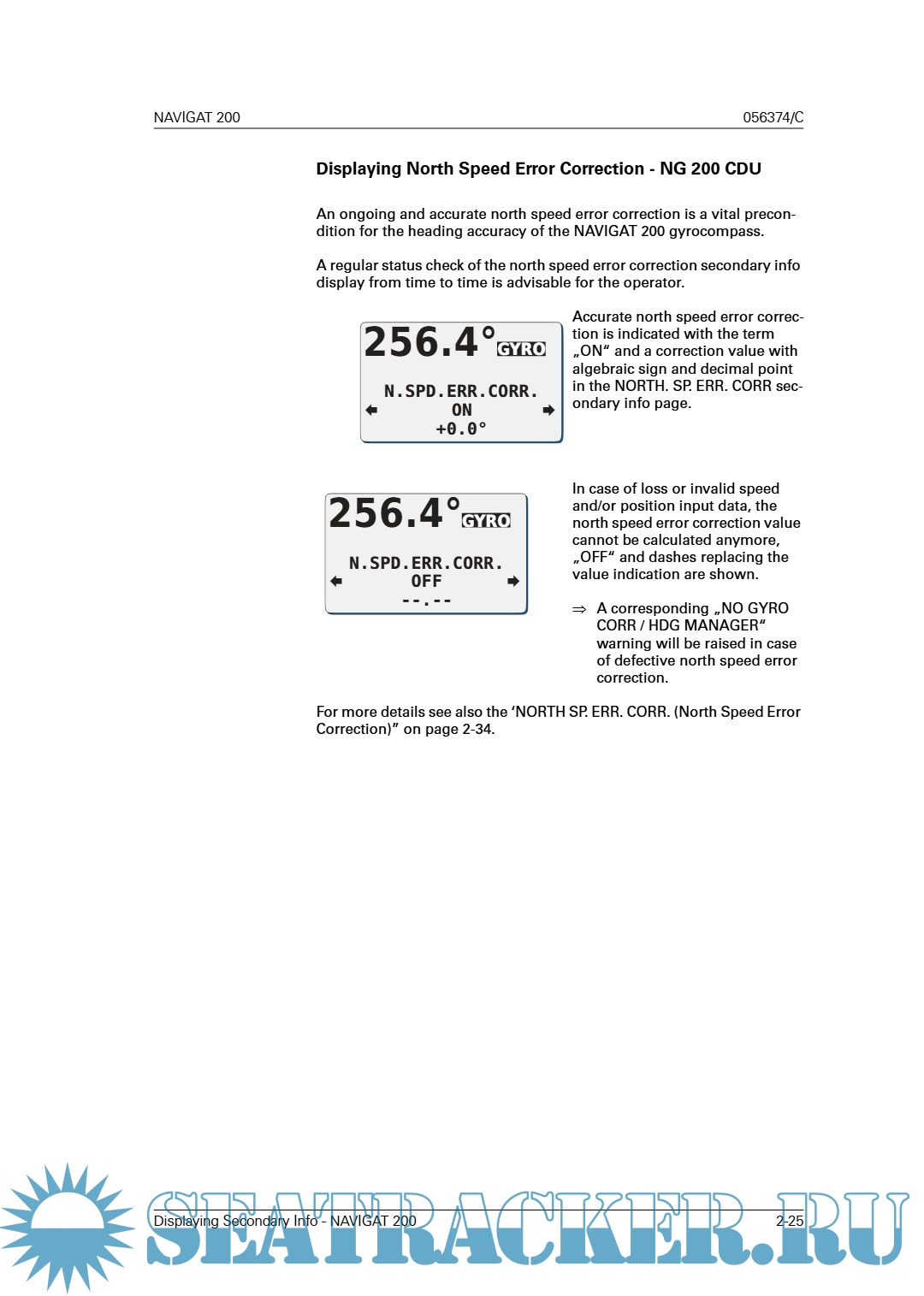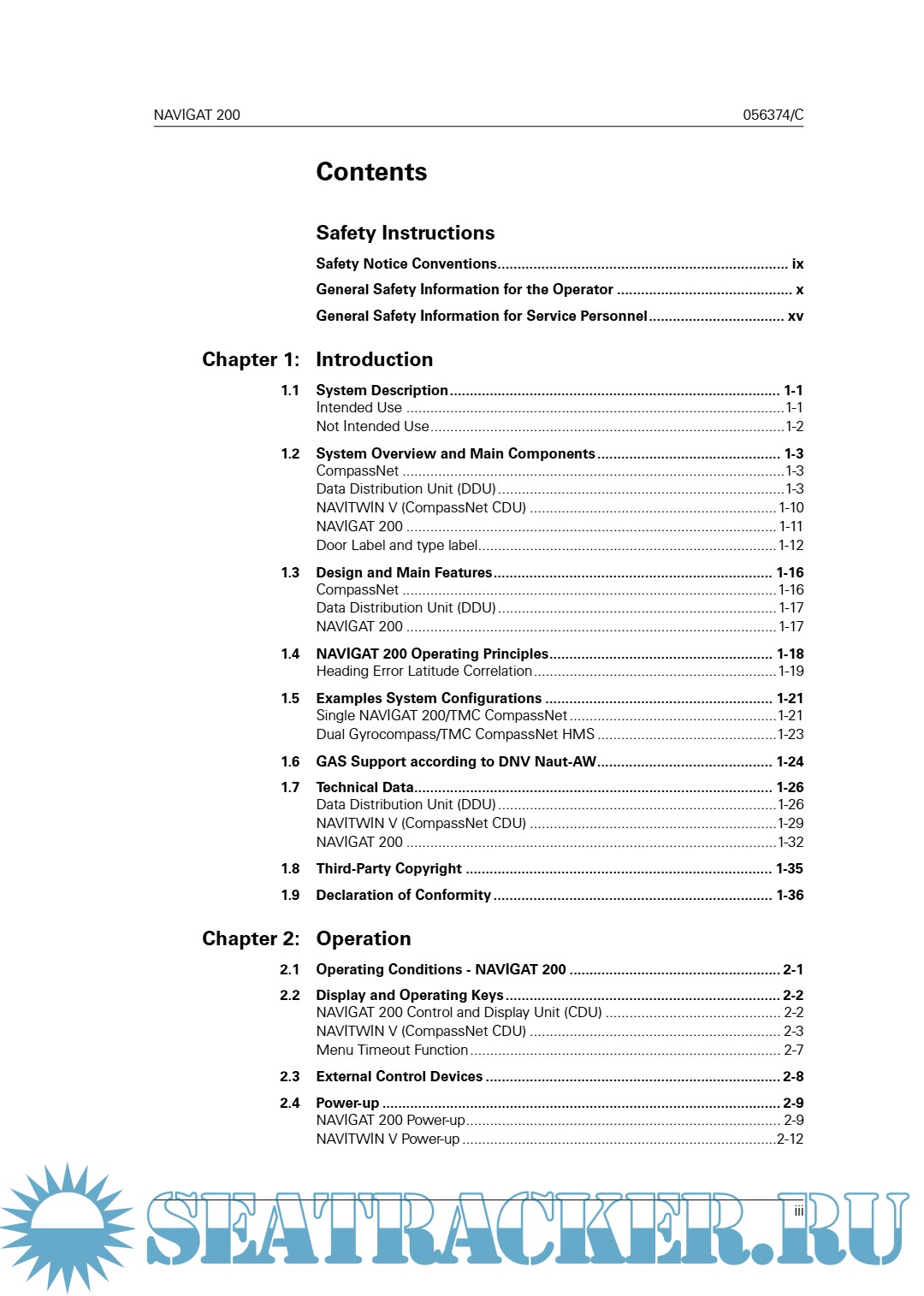 Год выпуска: 2018 01 30 Язык: Английский Автор: Sperry Marine Жанр: Документация Формат: PDF Качество: Изначально компьютерное (eBook) Количество страниц: 348 Описание: Operation, Installation and Service Manual Original Documentation / Keep for Future Reference NAVIGAT 200 Digital CompassNet Gyrocompass System Type 5026, Stock No. 073517 05026-0128-02, 056374/C, 30 Jan 2018 Northrop Grumman Sperry Marine B.V. (Representative Office) Woltmanstr. 19 • D-20097 • Hamburg, Germany
